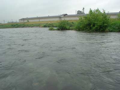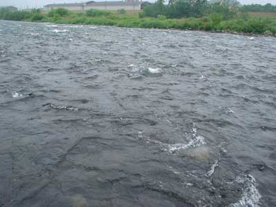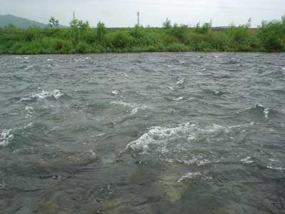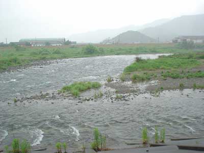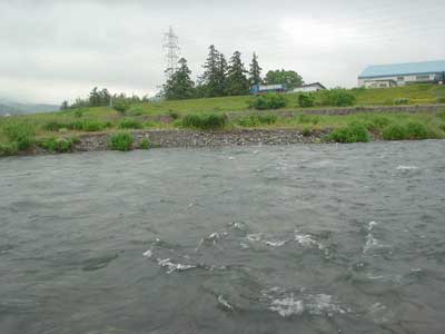 土日お仕事で、金曜か月曜に休みです。金曜は天気悪そう。しかし川は引き水で良さそう。土日たたかれた月曜よりも雨でもサラ場、高水に惹かれて金曜釣行にしました。 現地到着は10時。早くからやっていた榎本さんはビリ1匹。シャワーみたいな雨が降っています。前回やった大野橋上の瀬はやや水位が高く、石神堰堤の上に行ってみます。堰堤上は石色良し。
