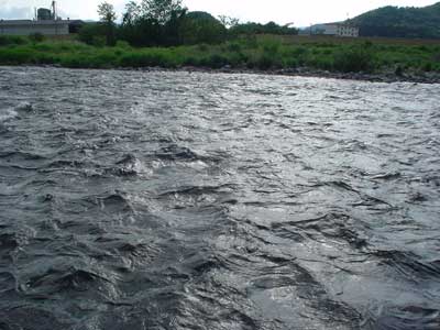 前回だめだった石神堰堤の上に行ってみます。金曜日は掛かりませんでしたが川の状態は非常に良さそうだったので再挑戦。今回も「引き」にこだわってやります。