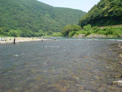 ここの瀬は石がやや大きいので、石に囲まれていて明るいところに鮎は居るようです。ここでの下見結果は「良いくじを引く」です。ここのエリアは全体的に魚影が濃いので小さなポイントでも丁寧に探ればそこそこ数は出そうです。追いは弱いのでプスッと刺さる針が重要。大会前日も少し見てみる予定です。 |