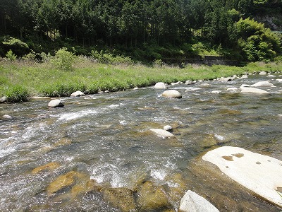 | 天気も良さそうなので榎本さんと根尾川で苦しもう!と思っていましたが、矢作川の情報を見ると中流部でも釣れた!情報が!せっかくの釣行なら釣れる確率の高いところへ行こうと矢作川へむりやり誘いました。榎本さんのホットライン情報では上流部の兜岩下流から寿楽荘付近が良いとのことでしたが、スケベ根性丸出しで中流部の川口ヤナ下流の瀬に行きました。 川へ降りると良く磨かれた所もあって期待します。しかし反応は薄く8時から11時まで2匹。榎本さんも2匹だけ。放流鮎がまだ散っていませんでした。移動して前回入った小渡へ。道中どこも釣り人だらけ。食事後瀬肩からやってみます。13日よりは綺麗になった感じ。瀬肩で2匹、瀬の芯で良いのが掛かりましたが痛恨のドンブリ。先の場所で桜の木に引っかけてそのまま使用したのが×でした。この日は水温が上がっただろう3時以降になっても前回のような高活性は見られず苦労してここでは12匹。綺麗な河川敷で今シーズン早くも車中泊。 翌朝日券を調達に前回購入した「こやなぎ」さんへ。親父さんに色々聞くとやはり兜岩周辺が良いとのこと。昨日素直に聞いていれば・・・最初は兜橋上流の「川ゴ」というポイントへ。良い瀬が続いています。駐車スペースも限られている場所なので早くに来てしまい7時に開始です。さすがに10時まで無反応。10時頃からポツポツ掛かり出し午前中に10匹ほど。サイズも小渡よりマシです。1匹は17pほど有りました。 午後は少し歩いて兜橋下流域へ。長く続く瀬の始まり付近へ。ここも凄い混雑です。しかしあちこちで竿が立っています。石色も綺麗です。最初の1匹は苦労しましたがオトリが変わってからは良く掛かりました。サイズも良く、鮎釣りの感触を楽しめました。この日は合計で31匹。やはり解禁当初の放流鮎狙いは場所選びが肝心ですね。毎日攻められている割には鮎は居る感じで、空いたポイントに代わりが入ってくるようでした。初期に釣りきられてしまうのではなく、程々に掛かり続ける良い鮎ですね。 矢作川は河川のゴミも少なく、草刈りも行き届き、駐車スペースやトイレも整備されていて漁協の努力が伝わってきます。中流域は水量も多く、魅力的な瀬も沢山あったので、天然が追い出す頃や終盤にまた挑戦してみたい河川ですね。 |