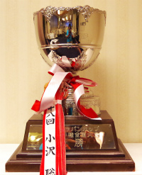 全国初の大雨特別警報が福井県全域に出された台風18号から1週間が経とうとする福井市には、増水後の九頭竜川の状態を危惧しながら全国各地から精鋭の鮎釣り師24名が集結した。選手たちが目にした九頭竜川は、水位は落ち着きつつあるもののいまだ平水時よりは30cm上高いうえに、ダムからの濁りがまだまだ取れていない状況で、まさに激流となり選手を手荒く歓迎する様相であった。この状況をどう戦うのか。皆が不安を抱えつつ前夜祭を迎えた。 前夜祭の会場は福井国際観光ホテル リバージュアケボノ 「曙光(しょこう)」の間に於いて、東村新一福井市長、松本文雄永平寺町長、九頭竜川中部漁業協同組合吉田廣秀代表理事組合長らを来賓に華々しく開催された。 選手は入場の際にゼッケン抽選を行う。ジャパンカップ全国大会では予選リーグを各6名で6試合行うが、1、2試合目、3、4試合目、5、6試合目をそれぞれ同じメンバーで戦うこととなる。ゆえに最大でも15名の選手との対戦となり、予選リーグでは顔を合わさない選手も出てくるわけだ。この組み合わせの妙が勝ポイント制予選リーグの行方に大きく関わってくるので、選手にとっては非常に興味津々となる。 昨年度チャンピオンの小沢聡選手の乾杯でスタートした宴では各選手のプロフィール紹介や福井名産に彩られた料理にアルコールも進み、大いに盛り上がった。しかし宴も終わりに近づくと選手たちはすでに勝負師の顔に戻り、明日への想いを昂らせながら会場を後にしていった。 選手の去った会場では、29人目の所有者を待つ金色のジャパンカップが静かに輝いていた。 |