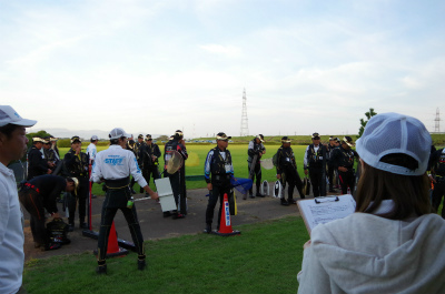 大会当日は実に慌ただしい。6:20に五松橋下の大会本部に集合した選手たちは、川を見る間もなく各ブロックへ出発していく。それにスタッフやプレス関係者、選手の応援者の車列が続く。オレンジ色の朝日の中、乾いた河川敷の未舗装路から砂煙がもうもうと上がり、いよいよ始まるな、と観る立場の者でも緊張が走るのだから、選手たちの気持ちたるや如何許りのものかと考える。 ここで予選リーグのシステムを簡単に説明しておく。1試合90分の試合を大会1日目にを4試合、2日目に2試合行う。各試合は24名の選手を6名づつのA〜Dブロックに分けて行う。前日の抽選で戦うブロックと入川順は全て決まっている。6名の選手の入れ替えは2試合ごとに行われる。例えば1試合目にAブロックを戦った6選手は2試合目はBブロックで入川順だけ変更になって再度同じ選手と戦う。 |