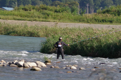 ![]() 増水の九頭竜川では選手の写真は背中からのものが多いが、唯一三嶋選手だけが正面からの写真も多い。多様な攻めを展開した証拠だ。 |