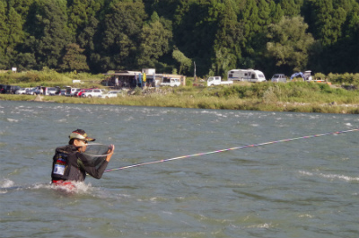 ![]() 序盤を制した玉木選手。仕事の関係で各地の河川へ赴くそうだが、それが功を奏したか、判断の難しい九頭竜を攻略できた。 |