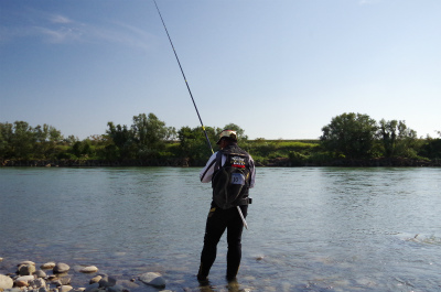 ![]() 沓澤選手は渓流の名手だ。大会前、本人に「流れを見れば鮎の居場所も分かるのでは?」と聞いてみたところ、「渓流は川を見れば分かりますが、鮎は下見をしないと分からない」と言っていた。ここ九頭竜川も延べ5日間下見に入ったそうだ。徹底した釣り込みから導き出した答えが先のチラシだった。 |
