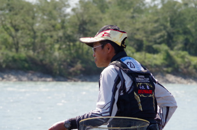 今回、ジャパンカップを最初から最後まで見て、勝敗の行方が24名の選手全ての動きが九頭竜川の変化と絡み合って決まるのだなと感じた。何が勝敗を分けるカギとなったのだろうか。 どの大会、どの選手でもバレやラインブレイクなどのトラブルは必ずある。そして「あの1匹が」で惜敗を喫し悔しい思いをする選手は今大会でも数多くいた。その中で勝った選手は何が違ったのか。 第3位となった参加選手中最年少の33歳、塩野選手は那珂川をホームグラウンドとする若手トーナメンターだ。2年連続で東日本セミファイナルを1位通過し九頭竜へやってきた。体格も比較的小柄な方で、歴戦の有名選手に埋もれて目立つ存在ではなかった。しかし、初参戦の2012年大会では15位に甘んじ、それで満足していたわけではなかった。時折見せる鋭いまなざしはその負けん気の強さを感じさせた。 |
