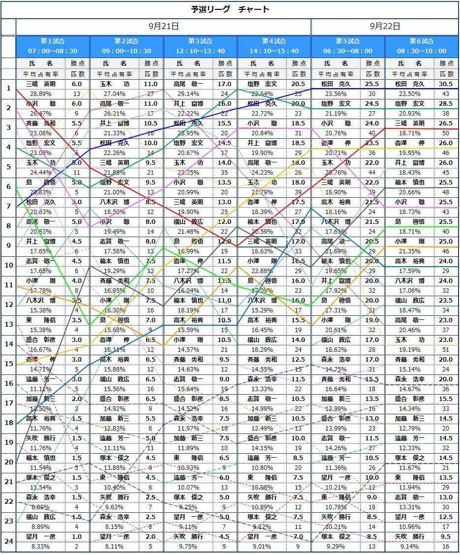 | 予選リーグ 1人・1時間平均実釣果 216(24人×6試合×1.5時間)/552匹 ※釣った実数です。 |