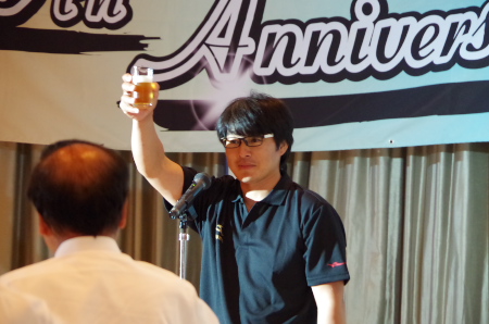 ![]() 宴はデフェンディングチャンピオンの三嶋選手の乾杯でスタートした。 |