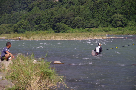 ![]() 高橋、楠本選手はすでに集中を高めていた。すぐにでも川に立ち込める雰囲気だった。 |