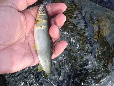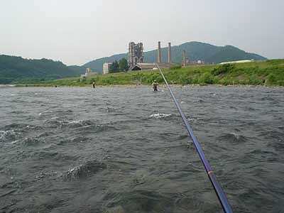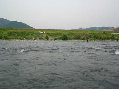 11時近くになりそろそろかな?と思っていると右岸の釣り人がポンポンと掛けました。いよいよ開始。メタルに張替え、頼みの新品養殖を送り出します。やや深いところで反応があり少し待つと黄色い鮎がやっと掛かりました。お昼までに8匹。12時に休憩を取ります。