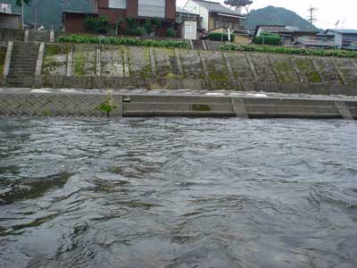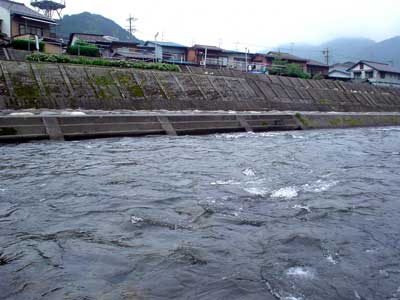 途中日券を購入し昨年と同じ吉田川の街裏駐車場へ。昨年と比べて随分水位が低い。昨年苦労したポイントを改めて見てみると平水時には良いポイントではありませんでした。増水ということをもっと考慮してポイント選びをすれば良かったと遅まきながら反省。石色は最高とまでは行きませんが、磨かれてはいす。宴会場を設営し、街中へ買出しに。結構観光客が居るのですね。郡上は川も町も良いところです。昨年も顔を合わせた方も一緒になって楽しい時間を過ごし9時には就寝。