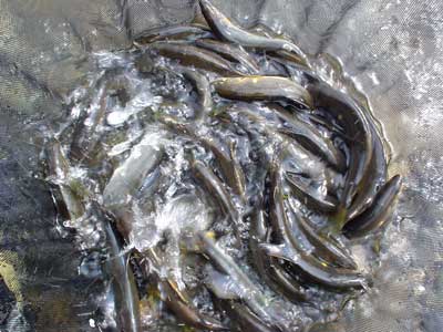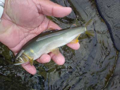 小さい鮎も沢山見えましたので今後も期待できそうです。今回も鮎を出荷しようと思っていましたが、奥様に確認するとお使い物にするので持ち帰りなさい、ということで持ち帰りました。アブラヒレが綺麗なオレンジになった鮎が多かったですが、さすがに郡上の鮎、美味かったです。正に泳ぐ松阪肉ですな。