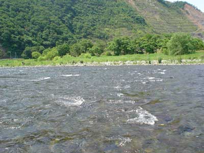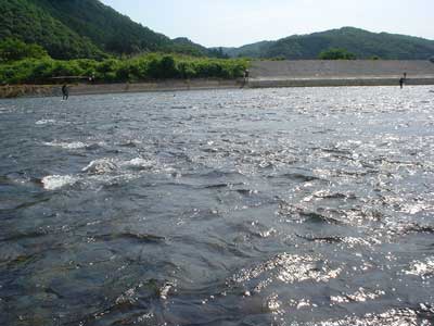 漁協前から川見です。漁協前◎、谷汲山大橋下流×、上長瀬△、ゴンタの瀬×、合流点付近ほんの一部○、他×、大門橋付近◎、長島付近×といった感じで見立てました。渇水アカ腐れ気味で上流部は釣り場が狭い。それと前夜祭開催を考え結局谷汲山大橋下流。結局下見の意味はありません!