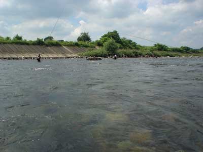 鮎心会7月の例会は長良川中央御手洗の瀬右岸で行いました。水位が高めだった長良川も梅雨明け後の日照り続きでさすがに減水してきました。どこでも川通しできそうで迫力に欠けますが鮎は多いそうです。