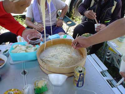 お昼はソーメン。炎天下でキンキンに冷えたソーメンを啜るのは最高です!沢山茹でてもあっと言う間に売り切れ。一人でマイペースに釣るのも楽しいですが、大勢でワイワイ釣るのもこれまた楽しい!どっちにしても鮎釣りは楽しい!