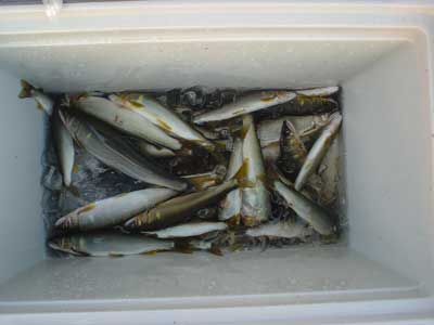 良く分るようになってきました。瀬でも大きい石よりもザラ瀬が綺麗で段々ペースが上がってきました。最後は瀬肩をヒデVさんと向かい合って楽しみ終了。午後は良く掛かり24匹。しかし斉藤さんは午後ペースアップで合計51匹!完全にまくられました。土日と川の状態が好条件で引き釣りにもこだわって楽しく釣りができました。次回の課題は入れ掛り時の対応です。 竿:シマノ競スクデットtype-R90NS 水中糸:複合メタル0.06(乱) 付糸:フロロ0.3、0.4 20cm |