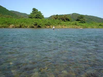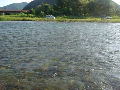 さて少し昼寝もして午後は下流の瀬落ちへ。午前のポイントと似ているので掛かるだろうと途中は捨てて一目散。狙いどおり出し掛かり2連発!その後やや間は空くものの順調に掛かりました。5時過ぎまでやって25匹。専用区下限付近は小ぶりが多かったです。増水前と明らかに掛かる場所、パターンが変わったように感じます。その日のパターンを掴めば鮎は 沢山いるので楽しめます。