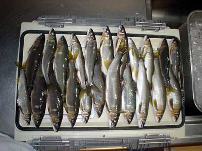 瀬では一度養殖の天然化したのが掛かった時に当たりが遠のきましたが、それ以外は飽きない程度に掛かり16匹。計22匹でした。オスは使っているとサビが出てきましたが、出ないうちに掛かると繋がりますね。