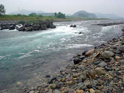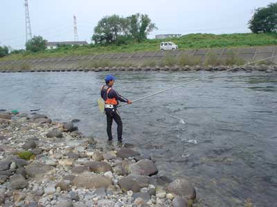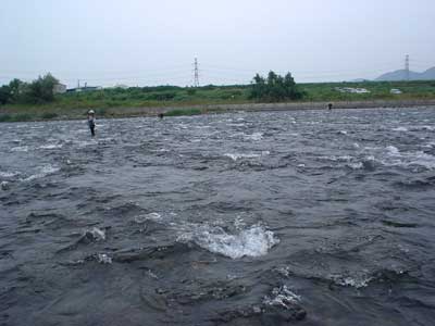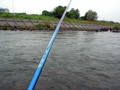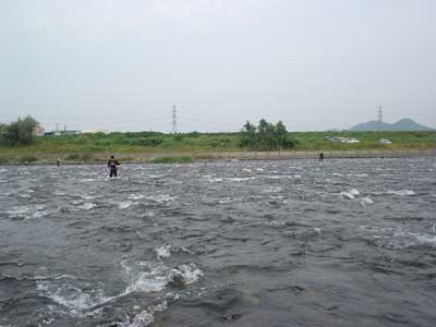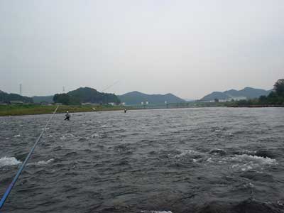 昨日に引き続き今日は長良川中央の納竿日。榎本さんも同行です。ポイントは今川分岐の下です。9月にここで何度も良い思いをしているH尾さんが先行していたので追いかけました。H尾さんは瀬落ちの深瀬を狙っています。 上の瀬には名手が数名。見ている間に2匹掛けて綺麗な返しぬきを決めています。当然そっちへ足が向きました。名人の上流に陣取って見学しながらやってみます。名人はボツボツと掛けています。ところがはるかに凌ぐペースで対岸のベテランが掛けます。格好はオジサンですが、竿は高級竿、見ていると立ち位置よりしもに送り出し、じわじわと扇状に引き上げています。一番強い流れよりやや弱い流れで大きめの石の後ろを攻めているようです。サイズもそこそこ。自分が探ったところでも掛けるのでもどかしい思いでしばらく眺めていました。 こちらにはなかなか掛からず動いた方が良いと思い何度も引き上げているとやっと当たり。小ぶりのオス。横着してタモの外で鼻管を通そうと思ったらツルッと逃がしてしまいました。また掛からなくなってウロウロ。瀬肩でやっと1匹掛かると小さいのが入れ掛かり。名人たちの視線を浴びてやや嬉!午前中6匹。H尾さんは10匹以上掛けていました。 せめてツ抜けはしたい。分流チャラでチビを1匹掛けやっとツ抜け。榎本さんは深瀬でまっ黄を連発!元気おとりをまた借りて1匹追加。昨日と同じ11匹で今シーズンの長良川終了(予定)です。 終盤の釣りを2日間やってみて感じたのは、鮎は居るけど追う鮎は少ない。同じポイントで粘るより細かく移動するのが良いようです。居着きが居れば意外に簡単に掛かる感じ。そして深瀬には良型が沢山潜んでいるようです。