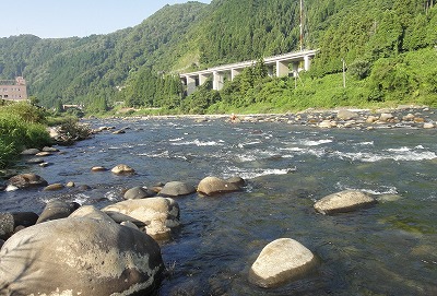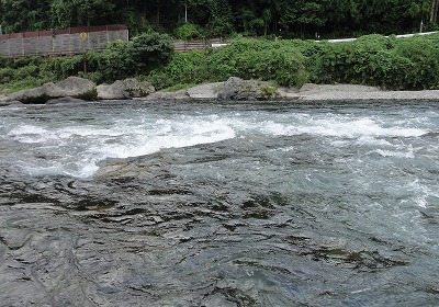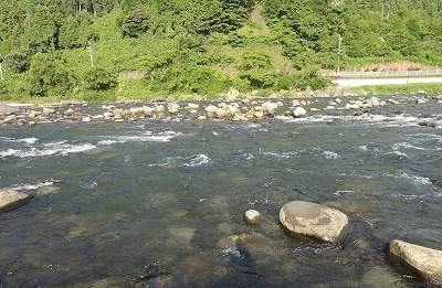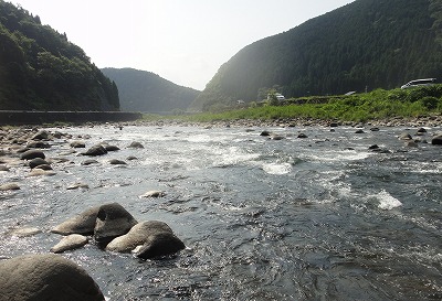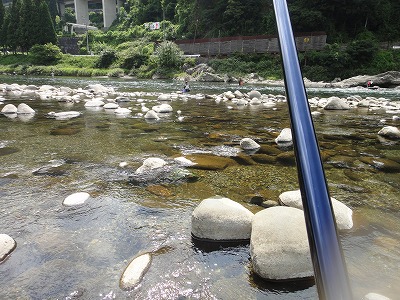 | お盆は2日半の下見です。今回はあまり知らない郡上エリアに絞って行きます。今回のテーマは大体の構成を理解しておくことです。今回も斎藤コーチに無理を言って同行をお願い。ヒデVさんも合流でした。 初日は漁協前。予定エリア最下流です。吉田川出合い淵尻から桃の木淵頭までを見ていきます。漁協から上は二手に分かれた流れのどちらを選択するかで迷いそうです。降り口付近は良いポイントですが当然人気もあり土日は一般の方が居ると踏んだほうが無難か。漁協前のトロも人が多い。下限の瀬は豪快で面白そう。ここ一帯は長良川の要素がすべてある感じ。チャラ、ザラ瀬、早瀬、急瀬、荒瀬、深瀬、トロ、淵と変化に富んでいます。その日、その時の変化を読み切れるかが重要か。場所によって掛かる鮎も色々でどの鮎に狙いを定めるかでタックルの用意も変わるので難しそうだ。1日見ていても同じ場所で短時間に入れ掛かることは無いようだ。如何に動くかも重要な要素。掛かるパターンを早く掴み、パターンに合ったポイントを潰していけるか。郡上エリアでも特に人が多いところなので複合的なポイント選択が必要です。鮎は非常に多く感じた。 2日目は神路(カンジ)と七つ岩周辺を探った。神路は岩盤主体の瀬と大石主体の瀬があり、双方が主なポイントか。トロ尻も良さそうに見えた。ここもトロには沢山の釣り人が居ます。渇水でも結構な流れだったので少し水が高くなると攻め方がガラッと変わるように感じた。竿選択に迷うかも。午後は七つ岩は高速の上で瀬を見てみます。暑さと二日目の疲れで熱中症気味。ゆっくりと昼休憩をして少し水泳?もしてクールダウンしてからの釣りです。渇水で高速上の瀬もどこでも竿が入ります。段々瀬では如何に早くデカ鮎を浮かせるかがトラブル減少のキモですね。しかしこの辺は石が大きく高低差もあるので動くのが大変。3回戦目だったるするとフラフラですね。今回から飲み物をスポーツ飲料に戻しました。塩飴もポケットに入れて随時補給。お陰で足が攣りそうな気配もなし。渇水で鮎が居ないところの石はズルズルです。老眼組込偏光サングラスだとすごく歩きにくい。ポイント移動に時間がかかるので何らかの対応を講じねば。 今回参加に際してダイワさんより竿の貸与がありました。希望は第一希望 銀影競技メガトルク90 早瀬抜 SMT付、第二希望 銀影競技スペシャルMT 90SY SMT付、第三希望 グランドスリム90、第四希望 銀影競技スペシャルT 90SR トーナメントトップ付でお願いしてありました。鮎が重いのでXトルクのメガトルクを中心に対応幅が広そうなグラスリを希望しました。届いたのは第1希望の銀影競技メガトルク90 早瀬抜 SMT付でした。 早速初日に使用してみましたが渇水の長良川では使いにくい。シマノで言うと黄色いトリプルフォースに良く似た感じでそれよりも張りが少し強く思う。場所によってはピッタリくる所もありますが、重く感じるのとテンションコントロールが難しいのでこの水量のままだと出番なしか。平水+αの時には良いかも。SMT穂先の感度は確かに凄い。逆に情報が多すぎて戸惑うほど。軽い竿に付けたら更に凄いのか。 午後からはバーサトルでやってみたが慣れもあって扱いやすく感じた。 2日やって感じたのは水温が高いのかおとりの弱りが早いこと。黄色くなってくると野鮎の反応が極端に悪くなってきます。養殖を大事に何度か使うことも必要かも。涼しい朝のうちと夕方は鮎の活性も高いようで良くかかります。日中は水通しの良い所が本命。 さてこの夜は小澤名人、浅川名人と話す機会が持てました。お二人とも自信に漲っている感じが印象的でした。気負いも感じないこの二人の決勝対決は結構あり得るかもですね。翌日は浅川夫人と高尾名人も一緒にプラすると言うことで小澤さんを中心に見学させてもらうことにしました。一言で言って釣りに迷いがない。ポイント、コース、スピード、反応判断、全て自分の意思で行っています。完全に管理されたおとり。管理している間はおとりが理想的な動きをしているイメージになるようコントロールします。これが正確で長くできるのが強みですね。 特に特殊なポイントややりにくい所ばかりを攻めている訳ではありません。普通に皆さんが竿を入れるような場所ばかりです。しかしその場所で5分探れば5分間全ておとりを完全に管理しているので得られる情報も一般釣り師より当然多くなり、その情報を分析する力も大量のデータ、経験値から他の釣り師よりはるかに優れているので当然多く釣る、という結果になると感じました。 小澤名人がこの日しきりにチェックしていたのは針でした。前日もバレが多く、この日もバレが多く(2割)出たのでその答えを探していました。deibuの場合は名人が言う頻度(2割程度)のバレは日常茶飯事的なレベル。ここはもう少し突き詰めて考えるべきだと感じました。 小澤名人には随分邪魔をしてしまいましたが、その場、