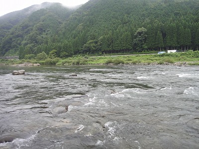 | 今回の下見は前回小澤名人の釣りを間近で見て感じたことを色々確かめることを主目的にやってみます。 エリアは午前中「ドウマン」、午後は吉田川「町裏」です。吉田川はエリアに入るのかはっきりしませんが、ある意味、郡上の雰囲気を一番出せる場所なので入るのではないか、との憶測です。 竿はバーサトル。ここ最近はノーマル仕掛けにしていましたが、小澤式背針を常用にします。竿操作もテンションゼロ付近を中心により集中して変なオバセや張り過ぎの時間を最小限に減らすよう意識します。1日やってみた結果、かなり良い感触を掴めました。名人の釣りを見て時間を置かずに試せたのが良かった。野鮎の気配が凄く分かった。この感触を忘れないようにすること。 しかし大きな課題が残りました。バレです。小澤名人が言ってたように意識してカウントすると2割を楽に超えています。なぜなのか。推考してみます。 □状況の確認 @緩い流れでバレる。強い流れでは出ない。 A針を色々変えても効果がない B当たってすぐにバレる C鮎はほとんどデカイ □バレる要素の推考〜上記のことから考えると・・・ @鮎がデカイので鱗もデカイ A渇水気味で色黒の鎧みたいな皮の鮎が多い。だから針が立ちにくい B掛かりが浅いので簡単にバレる □バレ防止の対応策 @穂先を強く(太く)して、針を叩きこむイメージにする A逆さ針を深く打つ B針交換を多くする C針を大き目にし、3本錨にする(穂先が硬いと身切れること、針1本で掛けた方が深く掛かると考える) 次回はこの対応策を検証します。 今回午後吉田川でやっていると3時ころ激しいスコールがありました。雨粒が肌に当たると痛いほど。風も強烈です。一瞬でしたが川はすぐに濁り、葉っぱやごみがいっぱい流れてきました。これには困りますねぇ。大会時はなんとか安定した天気になってほしいものです。残すところ1週間!次は23、24日に最終修行です。 |