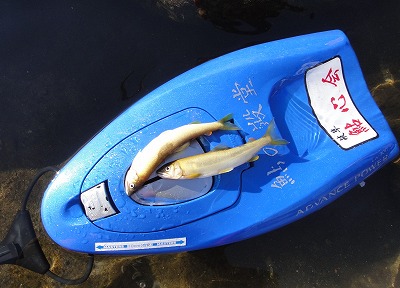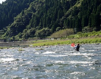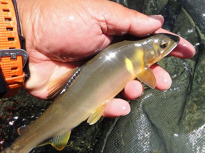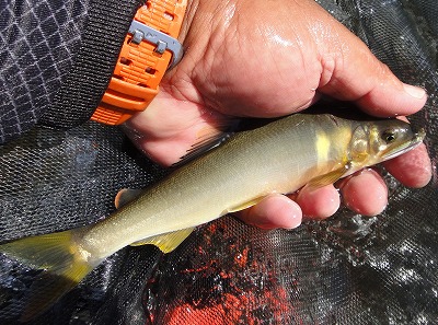 | マスターズも終わってやっと熊野へ行ける!と思っていたら熊野は未曾有の増水になり被害も甚大の様子。今シーズンはもう行けません。岐阜以北は雨の被害もなく釣りも可能。郡上へ行ってみることにします。平日なので一応この方とこの方に一報を入れておくと2日とも大丈夫ということで三重から乗り込みました。 1日目は因縁の白鳥エリアへ。車でのアプローチが楽な白鳥橋上流左岸へ車を入れました。水位は随分下がって少し物足りない感じ。この日は朝随分と冷え込みました。水も冷たい!白鳥橋上流すぐは川幅いっぱいの流れで浅い。少し上の右岸によった流れを狙う。ぼちぼち掛かるが右岸際は小さい。昨日誰かさわっている感じを受けた。3時間で15匹。午後も周辺で。囲炉裏料理さくら下の瀬落ちは鮎が残っていて良型3連発。赤瀬橋まで行って橋下流の瀬トロを探るが掛けられず。その下瀬で2匹、白鳥橋上左岸チャラで2匹の7匹だけ。1日目22匹。 鮎を頼まれていたので届けて大和道の駅で晩餐です。この夜も寒い!ぐっすり寝て朝は朝食できたよ!で起こされました。ハルさんの用意してくれたフランスパン、ベーコンエッグ、チーズ、野菜ジュース、ヨーグルト、コーヒーをごちそうになりボンジュール!です。さすが奥さんがフランス人?なだけはありますね。 今朝は昨年に引き続き、鮎釣りの見学にUご夫妻が鈴鹿からやってくるので待ち合わせ場所までお迎えです。見学してもらう場所はウインドパーク前にしました。足場も良く見やすいですからね。でも結果釣れなくて申し訳なかったですが。マスターズの名残は何もなく、釣り人も少なく寂しげです。11時までの3時間、朝合流のブラックさんも入って皆で競争。負けたら料理番!ハルさんはチャンピオンコース(堰堤から下って右岸攻め)、deibuは前から。予想通り掛かりません。やっと掛かる。でも小ぶり。待って待って次が来る。小ぶり。皆1匹、2匹で接戦!ハルさん瀬入り口で連発する!瀬か?突進するが瀬では来ず。ザラ瀬で掛かるようだ。針を在庫のバレン8号3本錨に変える。掛かった!バレタ!掛かった!バレタ!針を元に戻す。掛かった!そこで4匹追加。11時前には皆余裕の帰着です。釣れないから。結果はあえて書きませんが。 お昼はハルさん特製豪華アオリイカ入り焼そばをごちそうになり午後は吉田川町裏へ。明らか石色が本流よりも良い。瀬肩から始める。ど芯に鮎が残っていた!20〜24の肩盛り上がり鮎が沈めたら掛かる入れ掛かり!今季最高の時間を楽しむ。右岸向き浅瀬もキレイ。少しスリムな鮎ですがここも掛かる。上のトロも良く掛かっていた。網が入ったら一網打尽な鮎たち。最後に楽しませてもらいました。午後20匹ほど。郡上は夏を惜しむ釣り人が沢山でした。まだ錆は出ませんが、おなかがふっくら軟らかい鮎もいて終盤を感じずには居られません。瀬にもしっかり付いていてまだまだ下降の準備段階ではない様子。残すところ1カ月か。最後はどこで? 掛かったポイント 石がきれいで明るい場所 浅くても深くても白泡が混じる場所 石の横 チャラ、ヘチは小型 居れば素直に掛かる(長居は無用) |