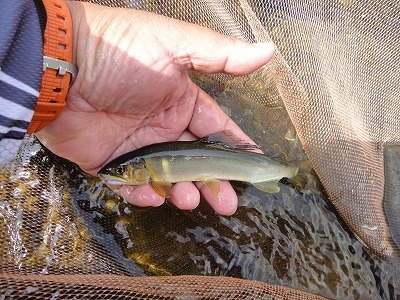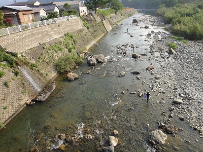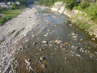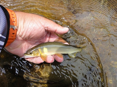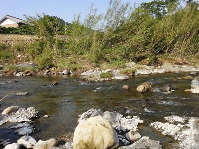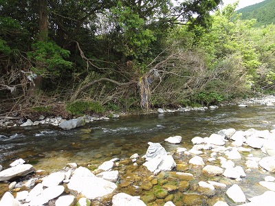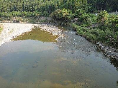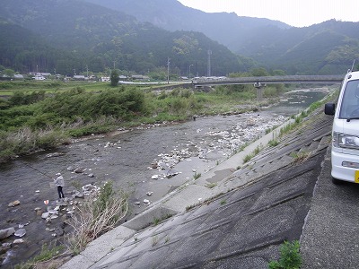 | 6月1日は毎年どこの解禁へ行こうか迷いますが、今年は夕方松阪で「第7回全日本鮎釣チーム選手権」のフィッシング遊ドリームチーム結成式に呼んでいただいたので大内山へ決定していました。どこの河川も渇水で、しかも大内山は昨年の大水被害復旧工事の影響で川が変わってしまった所、濁り等でイマイチとの前評判。ハルさんの下見情報で勧めてもらった上流部のポイントへ5時前に到着しましたが既に満員状態。川もチャラチャラでここを諦め場所探し。入ったことのない駒ヶ瀬橋周辺は2人しか居ません。一応専用区らしいのでここにします。 準備をして暫くポイント探し。上まで見に行きますが鮎見えず。移動しようか考えましたがとりあえず一番流れのある瀬を探ってみました。やっぱり無反応。30分で終了し再びポイント探し。下流へ行くほど泥かぶりで状況が悪い。平瀬橋で暫く見ましたがかなり厳しい様子。 不動野橋までさかのぼり見てみると人も多いが竿も曲がる。大内山マイスターO村さんも掛けています。朝一から良く掛かっているそうです。短い小さい瀬が空いていたのでやってみます。やっと大内山初鮎ゲット!粘ってやっと4匹、下を見に行きます。小さな瀬落ちの棚は気が覆いかぶさって釣り辛そうなところ。おじいさんが気の毒なくらい木に引っかけて悪戦苦闘。外しに行って戻る途中にまた引っ掛かる。その内嫌になるだろうな。案の定やめてしまいました。そこへ。下流からおとりを入れてベタ竿で引きずり込んでいくと掛かりました。掛かるとまた下流まで引きずり出して抜きます。ここで昼まで10匹。キチッとした追いで掛かる良い鮎でした。O村夫妻とランチ。O村さん40匹以上釣ったそうです。さすがマイスター。午後も同じ所でやりますが流石に当たりは遠く3時まで3匹追加のみ。合計17匹と寂しい結果となりました。最初のポイント選び失敗。今回はこれに尽きます。 |