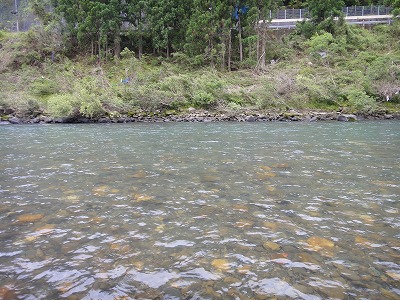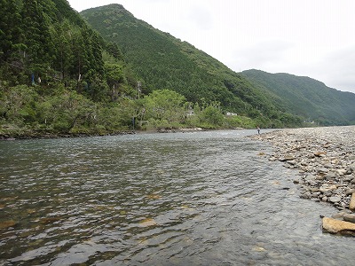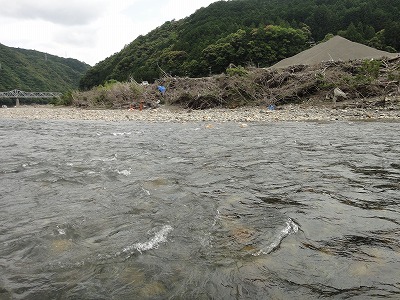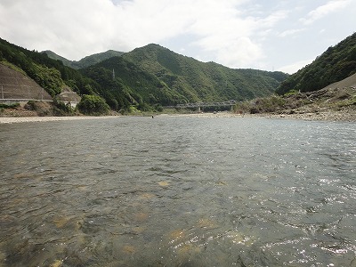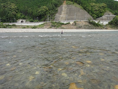 | 釣れない今シーズン。どうやって修正しようか。これは野性を取り戻すしかない。で熊野へ。前日から郡上へ行こうとしていたハルさんを熊野の方が良いよ、とたぶらかし、すでに何度か野性と戯れている夏は川漁師さん、現地ではジモピーYさんも合流してまずは宮井大橋上流の十津川でやります。ダム放水が始まるまでの腕慣らし。のつもりがハルさんが折角用意してくれていた天然ピンピンおとりを弱らせただけ。細い仕掛けでやっていたらドンブリしてしまいその後1匹掛けただけで±0、放水の案内を聞いて上流へ。 どこもかしこも昨年の大水被害復旧の工事中です。敷屋橋周辺は工事がありません。釣れている情報もあって釣り人がここに集中しています。熊野では珍しいほどの混雑。と言っても長良川などに比べたら空いているレベルですが。最初のポイントより明らかに石色が良い。瀬肩の広いトロ尻から開始。期待と違いすぐに掛かりません。段々と下がって波たちが出来る辺りでやっと1匹目。小さいですが良く泳ぎます。この辺りからは反応が良く出てポツポツ。瀬に入ると小気味よい当たりがパラパラ。昼休憩。ここは横に砂利工場があってちょっと風情に欠けます。おむすび一郎のおいしい弁当を頂いて午後もここでやります。橋下流が気になりましたが車が6台ほど。上の方が少ないのでまた上へ。瀬落ちからのトロ瀬は良い所ですがなぜか掛けられず。他の方は掛けるのに。何が違うのか分からないので段々と雑になって来ます。 3時頃になって仕切り直し。もう一度瀬肩に戻って丁寧にを心掛けてやり直し。入れたい所に無理やり入れず、おとりに行かせたい所へ。そうすると掛かりました。瀬の芯も同じようにやってみるとポツポツ掛かった。少しだけ勘が戻った手ごたえ。次はジャパンカップ予選です。 |