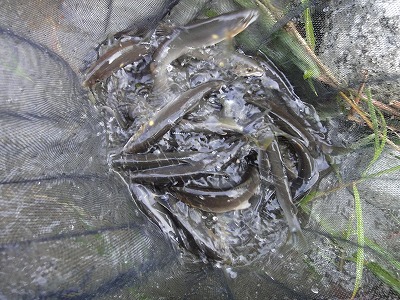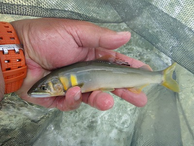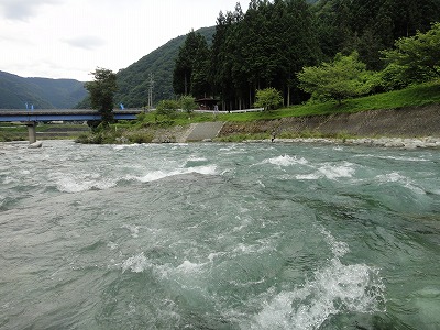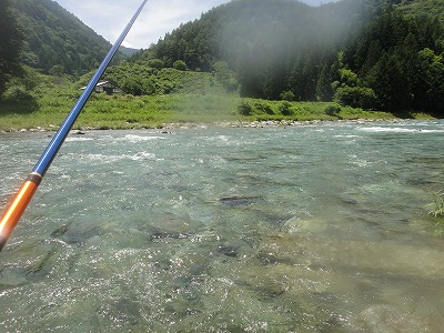 | マスターズブロックの下見です。どうやって下見をし、何を感じたのかを書いておいて後の反省にします。(この記事は釣行翌日に書きました。)今回は高水、それも馬瀬川には珍しく数日間続いてやっと引きかけたところです。川はほとんど垢が飛んで真っ白です。それでもヘチや大きな石の後ろ等には残り垢が確認できます。水位もまだ平水より高いです。朝は水温も低い。 まずは豊年橋下から開始。本命は左岸際の残り垢狙いですが、まずは手前の石裏から。真っ白なところですが小ぶりの鮎が掛かる。縄張りを持つ予備軍のような鮎です。サイズの揃った石の所に溜まっているようです。大会では数を伸ばす重要な鮎に思えます。次は真中に立ちこんで左岸際の残り垢筋。付き鮎が朝からまっ黄色で追ってきます。今年の馬瀬はこの鮎が多く面白い。でも大会当日までにはかなり抜かれてしまうでしょう。細かくポイントを潰していくと拾える感じ。縄張りは狭く、追いは激しい。如何に気配を感じて居る、いないを判断するかがキモのようです。ポイント移動も引き上げるよりもおとりを一旦上にあげて入れ直す方が反応が良い。 次は橋上に行ってみます。同じように石裏の流れでは白い鮎が溜まっているようで掛かります。どういったところに溜まるのかをチェック。意外に変化の無い流れですが石は入っています。左岸際の残り垢を右岸から立ちこんで狙うにはまだ水位が高い。一旦橋を渡って左岸へ。岸に立ち際を探るとまっ黄色が掛かる。茶色と黄色が混ざる所でこの日は良く掛かる。芯は無反応。居付の鮎は狭いなわばりに入ると激しく追うが、出てしまうと深追いしてこない。追いは強いものの一発では掛からないので狭い範囲で泳がせて掛けるイメージが良かった。 糸はそれが出来るように寝かせても立てても良い。とにかくポイントから出ないようしつこくその場に留まらせること。 午後は豊年橋から下流の神手橋までを探ります。今年は瀬を中心としたエリアで良く掛かります。しかし1ヵ所でまっ黄色は何匹も掛かりません。細かくポイントを潰していくことが必要。大会では動ければ良いですが、前後の選手の攻め方をよく見て攻めていない所を探る必要があるかも。また、瀬の中でも予備軍が溜まっている場所は限られているようなので、そこを中心とした周辺を探れれば理想的ではないか。川を見て如何に多くポイントとして見られるか、またそこに的確におとりを入れて行けるかを意識しながら釣ること。針はイニシア7.25がバッチリ。黄色い鮎には小さめでも良いが、予備軍鮎には大き目が良い。大会前日のエリア外での釣りで支障が無ければ針はこのままで行こう。 |