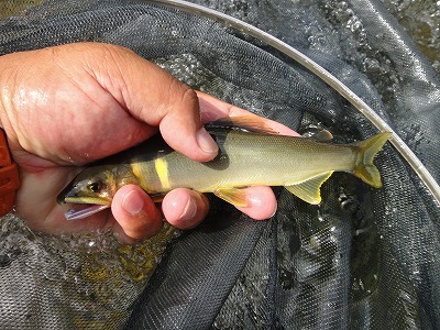 | マスターズも終わり気楽な気分で(柄にもなく知らず知らずにプレッシャーを感じていたようです。)釣りに行けます。行きたかった長良川中央へ。今回もご近所のY田さん同行です。夏の間はまっ黄色なのか誘うとすぐに追ってきます?今回長良川初デビュー!プラス新竿バーサトルもデビュー!さてどうなるのでしょうか。(Y田さんのブログはこちら!)deibuと同行の場合は朝もしっかり食べます。吉野家朝定食大盛をきっちり食べて中央の有名ポイントを見てから矢島おとりさんへ。思っていた以上に水位も下がり厳しそうです。 榎本さんが「おみたらしの瀬」右岸に居るということでそちらへ。コケも既に付きすぎの感じ。よーくポイントを吟味して瀬の中のピンスポットを狙って開始。チュン!と小さい当たりですぐに掛かる!20cmほどのまっ黄色!予想外でビックリ。周辺で同サイズから22cmほどまでのまっ黄色ばかり5連発!どないなってますねん!でも心配ご無用。その部分だけ見事に竿抜けだったらしく打ち上げ花火のごとく終わりました。あとはあちこち竿を出すも反応薄く苦労します。トロ瀬ではポツリポツリ。小型も混じります。お昼まで8匹だけ。情けない。 午後も同じエリアでやってみますが暑さであまり移動する気になれず時間だけが過ぎる。5時までやって7匹追加できただけ。瀬ではポツポツ掛かっていました。矢島さんが言っていましたが、広く動いてどこに居るか探し出さないと釣れない。まさにその通りでした。水温も高く、いわゆる「土用隠れ」でしょうか。朝一掛かったことでその後の釣りが少々雑になってしまった。大胆にポイントを替えて繊細に攻める。これが重要か。 今回久しぶりにバーサトルを使いました。何でも「ソフチューブトップ」と言う細い穂先はどちらかと言うとサブの穂先だと小沢名人が言っていたので今まで使ったことのない太い方に変更。やっぱりチューブラ穂先はダイレクトに操作できる感じで面白いですね。もちろん小澤式背針も常用。瀬で良型が来ても楽にあしらえました。バーサトルはバランスが良い竿だと改めて感じる。RSは掛けに行く竿、バーサトルは獲る竿というイメージです。中央でもこれ以上渇水が進めばRSの方が掛けやすそうな気がします。 |