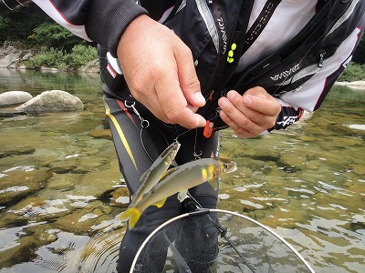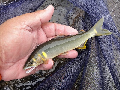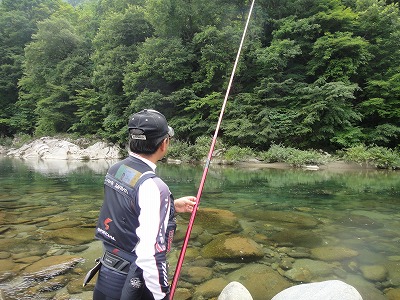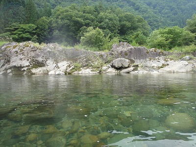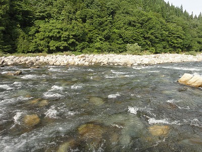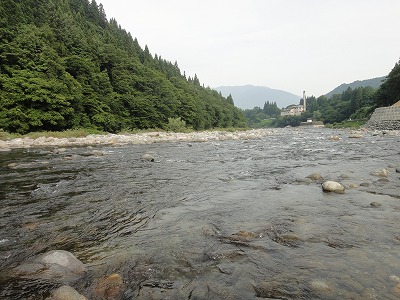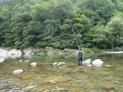 | 今回は前々から行きたいな、と思っていた飛騨神岡町の高原川へ行ってみました。久しぶりに春日井の叔父も同行。東海北陸飛騨清見で降りて卯の花街道利用して古川町へ。R41をほんの少し走って神原峠へ。再びR41へ出る手前(下山田)にある農免道路杉越トンネルへ右折して少し走ると高原川へ出ます。浅井田ダム付近へ行くならこちらが早いです。 川べりに有る川甚亭さんでおとりと日券を調達していると他のお客さんもやってきました。おや?矢作川の椿名人でした。10分ずれていたらお会いできませんが、奇遇ですね。一緒にやってみましょう!となりました。川甚亭さんでいくつか聞いたポイントから、川の近くまで車で行ける場所と言うことでJAカントリーエレベータの下へ。7時頃でしたがまだ誰もいません。川を見るとトロや瀬が続く変化のある場所だったのでここでやってみます。 椿さんは上流へ。叔父は沢山黄色い鮎が見えるトロ場を勧めてdeibuは下流側へ。思ったほど冷たくありません。放流オンリーの川なので鮎が居ない所は泥かぶりです。トロ尻はピカピカで夕方掛かりそう。その下の瀬を探ってみましょう。ここをやれば大体の傾向掴めるはず。 さあ、37年ぶりに高原川挑戦です!流芯の石は全くコケが付いていないように見える白い部分とコケが付きすぎにも見える茶色い部分が混在しています。同じ茶色でも光っているところで反応が出ます。出た所で待っていれば黄色い鮎が掛かってくれます。サイズは小さいと聞いていましたが、瀬の一部では良型も連発し調子よく掛かりました。当然竿が入っている感じはしますが、細かいポイントを丁寧に探ると拾えます。瀬を2往復してお昼にしました。午前中38匹。椿名人を6匹リード!叔父はトロの石に座り込んでボツボツ掛けている様子。シルバーシートです。 椿さんとたっぷりビールを飲んで休憩。9月には長良川中央で行われるチーム選手権、バリバスの全国でも一緒になるので色々お話が出来て良い機会になりました。バリバスではなんてったって昨年準優勝の全国シードですからね! 午後はエリア交代?で上流へ。どんどん歩いて行って石色の綺麗なトロでやってみます。下へ送り込んでゆっくりゆっくり引き上げるとビューン!っと掛かります。暑いので腰まで立ちこんで気持ちよく釣りが出来るので暫く楽しんでしまいました。瀬ほどのスピードはさすがに有りませんが楽しい!高原川は今がピークの混雑らしいですが上下500mほどの見える範囲で他にお二人だけ。クマが出ないか心配するほどの静けさの中で釣りが出来ます。ここのポイントはロケーションも良く良い感じ。 トロ場に浸かっていたらあっという間に時間も過ぎていて最後1時間半は戻りながら開けたザラ瀬を探って行きました。広くゆっくり流れる浅トロに少し大きな石が流れに変化を与えている所。全てがポイントにも見えるし、狙った所で掛からないと全てがダメにも見える的が絞りにくい苦手なポイント。特に夕方になると釣りが雑になって来てダメです。どうしても下に有るザラ瀬に目が行ってしまうのでサッサと見切ってザラ瀬へ。ここでは流れの筋へ入れると当たりが出て良いペースで終了。午後は27匹の合計65匹で高原川を終了! さて下流に入った椿名人、瀬を中心に入れ掛かりもあって午後は42匹!計74匹と一気に逆転されてしまいました!実力の差ですね。お昼にあと2本くらいビールを勧めておけば良かったのかも。。。叔父もシルバーシートからほとんど動かず30匹ほど掛けていました。美濃ICから2時間ほど。飛騨清見からの峠道も走り易くなり案外楽に行けます。神通も良いですが、のんびり涼しく釣るならここも良いですよ。神岡の市街地付近が人が多いようですが、少し上の方がロケーションも良く人も少なく良いと思います。但しアブは多いので注意です。(今回は一度も噛まれませんでしたが。)つい先日も釣り人がクマを見ているそうなので釣れる度にオリャー!とか声を出して釣ると良いかも? また高原川の支流に双六谷という川が流れ込んでいます。ここの透明度は素晴らしいです。水温も低いらしいですが、合流点付近は鮎も釣れるらしいのでロケーション優先なら面白いかも!です。皆さんも飛騨の短い夏を一度楽しんでみてください。 椿さんとお別れし、高原川を後にし、双六谷沿いを通り山吹峠を登ると山之村地区です。標高800〜1,000mに点在する集落は昔から変わらない原風景を沢山残していて何時行っても癒される場所です。山吹峠から秋に望む紅葉の先に堂々と構える穂高連峰は最高の眺めです。叔父、従兄弟の家はその中の下之本にあります。子牛の生産と高原野菜を作る専業農家です。子牛は飛騨牛はもとより、松阪牛にもなるそうで知らず知らずのうちに食しているのかも、です。囲炉裏の薪ストーブに火を入れないのは1年のうちでもこの1カ月ほどだけ。この日も朝晩は寒いほど。もちろんエアコン、扇風機さえも必要ありません。囲炉裏端で懐か