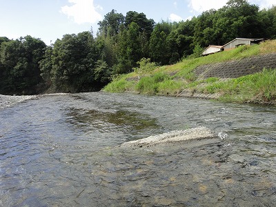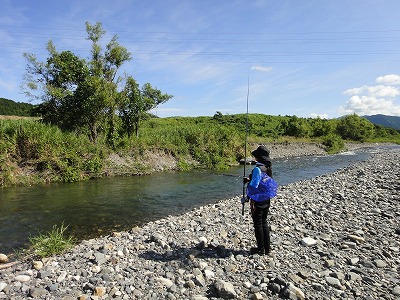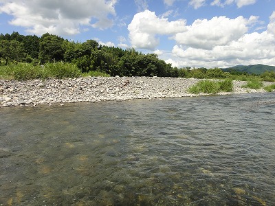 | 今回は鮎釣りを始めてみたいと言うUご夫妻に初めてご指導する釣行です。5月に一通り道具を揃えてもらい、安全で釣れる河川で最初は釣ってもらえたらと安曇川朽木を考えていましたが、今年はそんなに簡単には釣れなさそう。どこか良い所は無いかと思案しているそんな折、最近知り合ったY田さんが良く行く野洲川上流の土山漁協エリアがぼちぼち釣れると言うことで、ここでやって見ることにしました。 鈴鹿峠を越えてすぐのところに有り、家から30kmほど。超近い!お盆の渋滞も気にする必要なく行けます。前日Y田さんが少しの時間竿出ししてそこそこ掛かったと言う白川橋(国道1号線の橋です。)から上流付近へ。河原まで車が入って行け、休憩場所には木陰もあって良い所。 竿の伸ばし方から始まっておとりを1匹犠牲にして仕掛け装着しておとりを送り出すまで1時間。人に教える難しさをしっかり認識してやっと実釣開始!ポイントはちょっとした深みからチャラ瀬へ変わるところ。石色は良く鮎は居るように見えました。しかしおとりはそこへ行きませんし、誘導もうまくいかず。仕方なくdeibuが少し竿を持ってポイントまで誘導しこの辺なら掛かりそう、掛かってしまいました!とりあえず1匹目は大事に確保。おとりと同じくらいのサイズ。まだ掛かりそうです。今度は自分で操作してもらってポイントへ。入れ掛かりです。タメ寄せで掬っておとり交換、送り出し。また掛かった!良く掛かります。 これだけ掛かると自分も釣りたい!我慢限界!お二人を放置し自分も釣り支度。チャラ瀬、瀬と探りますがよくバレる。今シーズン調子が良いイニシアが合わない感じ。それにいくら気性の激しい湖産の鮎でも変な泳ぎでは当たりが遠い。元気なオトリだと一発です。バレるとリズムが崩れます。最近良く感じることですが、状況の良い時ほど丁寧に釣らないといけません。どうも釣りが雑になる。丁寧に早く!釣り終わってから何時も反省です。 このエリア、細い流れなのでどんどん動いて探りを入れて行きました。少し下って護岸沿いに流れる沈床ブロックが綺麗に並んだところに来ると、沈床の間に有る石は良い色です。鮎も結構見える。これは掛かりそう。やっぱり居た!良いのが掛かりました。お昼まで15匹。 木陰でお昼休憩。初めての方に釣ってもらおうとすると鮎釣りって覚えることが多いですね。普通の釣りなら竿と仕掛けと餌で成り立ちますが、鮎は準備から大変ですね。なかなか始めにくいというのも良く分かりました。しかしながらこの川は釣れる!ということも分かったので、自分ももっと釣りたい欲求が抑えられず午後も放置プレイです。今度は上流へ。居る所は石が綺麗で分かりやすいのですが、川幅が狭いのでポイントへのアプローチに悩みます。どこかを潰さないと攻められない。でもややこしい所に立って攻めると良型が激しくアタック!深瀬では連発もあって楽しい!丘からの釣りが多いので午後は熱中症気味。何度か竿を置いて川に浸かってクールダウンしながら更に上流も見に行きましたが、そこから上は小石底で変化に乏しく小型になったので戻り、午前中やっていた付近の攻めきれていない所を丁寧にやると良型が良く追ってくれて終了。午後は26匹でした。 Uご夫妻は午後は掛からなかったそうです。やはり初挑戦で放置プレイは酷でしたね。Uご夫妻、ごめんなさい。つくづく自分は指導者に向いていないなぁと再認識しました。さて今回初めての土山でしたが、予想以上に釣れました。バレが多くリズムを作れませんでしたが、上手くやれば50匹以上は楽に釣れそう。お客さんが少ないのでどんどん動いて探れば楽しめます。もうじき網が入るそうですが、他がダメな時の避難河川ができました。 |
