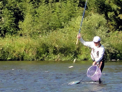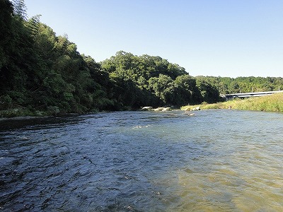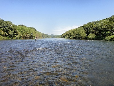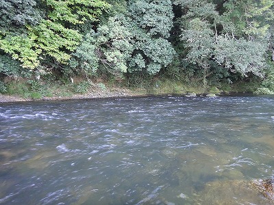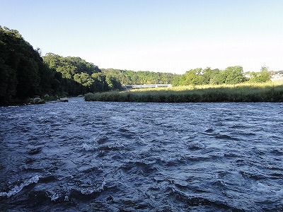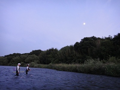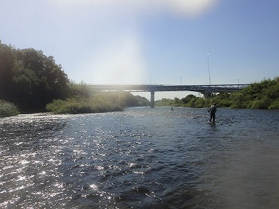 | 大会も全て終わり、やっと自由な釣りが出来ます。狩野川以来10日ぶりの連休です。1日目は矢作川にしてみました。この2年ほど解禁当初の5月に何度か行っていますが、終盤は初めての釣行です。矢作川モニターの椿さんから色々情報を得ていましたし、5月釣行時に中流〜下流は気になる場所が多かったので行くことにしました。 まずは中流にある広瀬やな付近を覗いてみます。右岸、左岸と二股になっていて右岸側にやながあるようですがおとり屋さんからは見えません。右岸側に導水してあるのでそっちに鮎が多いと聞いていました。常連らしい方が入ってすぐに2連発。まずはここでやってみることにします。既に右岸側は釣り人が居たので左岸側の流れを見に行くと瀬肩は綺麗です。ザラ瀬左岸を狙って開始。朝は川面に日が差してなく、様子がイマイチ分かりませんが想像しておとりを入れていきます。しかし瀬では反応が無い。瀬落ちの緩い流れでやっと反応あり。鮎の跳ねもあります。そこでやっと1匹目。おとりが変わってすぐに反応出ますがケラれ。岩盤の溝を狙ったら根がかりで貴重な野鮎ロスト。朝一掛けていた常連らしい方が近くに移動してきていたので色々聞いておススメ場所をやってみる。2匹掛かるが反応が薄い。 右岸へ行ってみると同行のY田さん、6匹だそうです。こりゃいかん。右岸に来てみると左岸より石色良いです。比較的浅いザラ瀬を探ってみると結構良い型が掛かりました。お昼までやってなんとか7匹。 午後は平成記念橋上流へ。街中に有りますが川に立つと両岸に有る茂みで「豊田市」を感じません。少し上に広大なトロが見えます。午前中の広瀬とは川相も違って、底石はやや小さくサイズが揃っていてフラットな流れです。ダム水特有の濁りもこちらの方が少ないです。石色は中流よりも随分良い感じ。釣り人も結構入っています。聞くと朝は良く掛かったそうですが、お昼すぎ現在はピッタリ止まってしまったとのことでした。やっぱり椿さんおススメのここへ朝から来ておけば良かった! さて川を見ながら少し上へ。瀬肩は他の方がやっていたので少し下で渡る時に綺麗に見えた流れから。じわじわと引き上げ待っていると小気味よい当たりで掛かった!イメージが掴めました。減水でやや鮎が神経質な感じで少し待たないと掛かりませんが、ポツポツと掛かります。瀬肩からのちょっとした絞り込みのほんの一部は竿抜けらしく連発。でも他はどこも竿が入っているようで厳しい。反応を探して広く探ってみます。全面石が入っていてどこもポイントです。しかし釣り人が歩き回るので散発でしか掛かりません。 釣り人がぼちぼち減り出した4時過ぎに仕事を終えて飛んできてくれた椿さん合流。勝手知ったる矢作川をどう攻めるのか。「今日は良い天気だったので今から掛かるよ!」とのこと。曇りや雨の日は夕方は掛かりにくいそうですが、晴天の日は夕方狙い目だそうです。なるほどそう感じますね。deibuの引き舟から無作為に掴んだおとりはやや黒ずんだオス鮎。良いのが他にも居たのに「どんなおとりでも大丈夫!」と言って狙った所で開始するとほどなく掛けていました。その後は早いピッチで動く、動く。左を向いていたかと思えば今度は右、橋近くまで下って行ったと思ったら今度は瀬肩と早く良く動きます。竿抜けらしい所では連発もあって短時間で8匹掛けていました。 ポイント移動を早く頻繁に行うとどうしても操作が雑になりがちですが、名手は共通してそれがありません。おとりを入れた瞬間集中していますね。結果おとりが良い状態で泳ぐ時間が長く取れるので釣果が上がるように感じます。この日は月が輝きだす6時までやりました。自分も終了5分前に掛けることが出来ました。薄暗くなっても掛かるんですね。午前中はポイント選択ミスでしたが、午後は楽しめました。欲を言えば水位がもう少しあれば楽しかったと思います。矢作川のこのエリアなら鈴鹿から伊勢湾岸を使って1時間ととても近いです。こんな街中で天然鮎がバンバン掛かるなんて少しミスマッチですが、川へのアクセスもし易く便利なのでおススメですね。台風次第ですがあと2週間はイケそうな感じです。 |