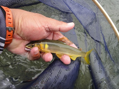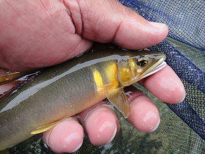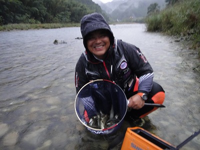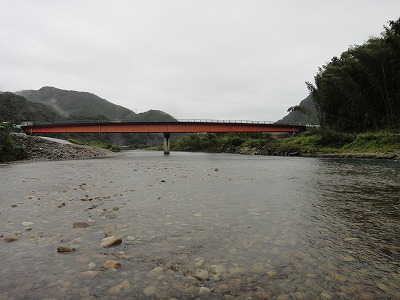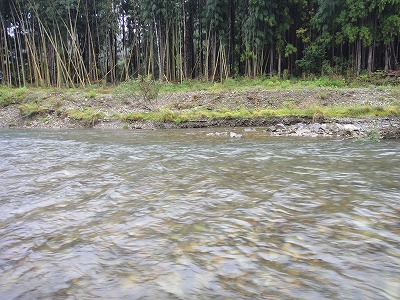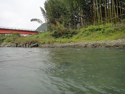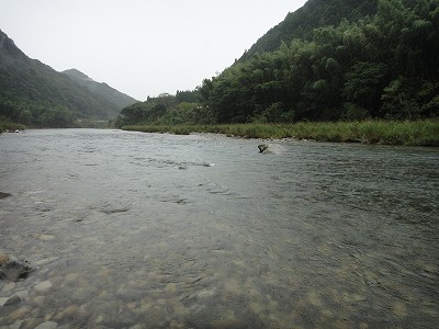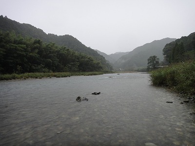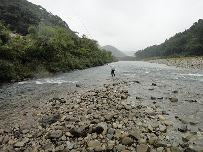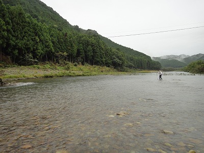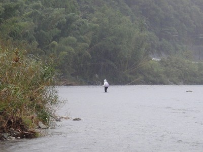 | 終盤に来て休みがかみ合わず、台風接近の18日、19日に南紀、熊野への納竿釣行となりました。以前から熊野へ釣行の際は是非同行したいと言われていたY田さんが「大阪方面出張」ということで「同行」です。3時に鈴鹿を出発して一路古座川へ。ザーザー降りの一枚岩で記念撮影し、予約しておいたおとりと券を調達に田上おとりさんへ。毎日川へ入っているので情報が的確です。元気な天然おとりを頂きおススメの一雨地区うるの橋付近へ。 強い雨が間断なく降っていますが、濁り、増水はありません。うるの橋上流のチャラ瀬には小さな鮎がそれこそ「踏むほど」いて、思わずタモですくおうとしたほどです。(クマが浅瀬でシャケを追い掛ける姿を想像してください。)この場所は橋上流に極短いザラ瀬、上下にトロがあり、上の方には白波が有る瀬が見えます。短いザラ瀬の上には笹でソジが打ってあります。 まずはザラ瀬に二人並んで開始。掛かるのでしょうか。波立ちにおとりが落ち着くとすぐに当たり!掛かるのでほっとします。ポンポンと続けて掛かりますがやや小ぶり。田上さんが深瀬で掛かると言っていたのでその下の深瀬へ。底の状態が分かりませんが、駆け上がりになる所で待つと強烈な当たり!20cm級が掛かりました。その周辺でまっ黄色ばかり数匹掛かる。見事な鮎ばかりでしばし見とれる。橋下流には広大なトロ。右岸寄りの流芯は水深もあり良いかも。しかしここは30分カラ引きに終わる。午後なら掛かるのか。 Y田さんは上流の瀬に移動していた。もう一度ザラ瀬に戻ってやってみる。ちょっとした流芯でいいのが連発する。入れ掛かりになり雨を忘れて楽しむ。本当に10月中旬の釣りなのかと疑ってしまう追いと当たり。さすがに小ぶりになってきたので上流のY田さんを見に行く。流れが二つになった勾配のある瀬から水深が有る落ち込みからトロへと続く良い場所。でもあまり掛かっていないらしい。瀬肩を探って見る。流芯で小型。左岸の太い流れにも入れてみるがここも白く小型。どうも攻められている感じ。瀬落ちではY田さんが良型を掛けていた。橋付近へ戻って少し追加。午前中は23匹でした。 雨が止まないので少し上流の鶴川橋の下へ行ってランチ。冷えた体をちゃんこ鍋で温める。身も心も温まり午後の部へ。雨は一向に止む気配が無い。逆に強くなってきた? 午後は鶴川橋から少し下、一雨バス停の下流にあるところへ。道から良く見えて、車も川近くまで入れる(消防用かもしれないので注意)所なのでいかにも竿が入っていそうです。ここも短い瀬から浅トロに続くポイント。時間は1時半を回っていました。ソジ下の大石前におとりを入れると一発で掛かる。まっ黄色!これは入れ掛かる!30分で10匹入れ掛かり!こんな入れ掛かりは久しぶり!強い雨が川面を叩き、警戒心を解くのか強烈に追ってくれました。これは一体どれだけ釣れるのか!心配ご無用。その一角だけ竿抜けだったのか、はたまた時間の都合だったのか分かりませんが、薄っすら濁りが出てきた2時半以降極端に反応が悪くなり、体も冷え冷え(年中タイツです!)で4時にギブアップ。午後は14匹でした。 Y田さん、だんだん粘り強くなり、強雨の中、集中してやっています。なんとかツ抜け達成で終了。一番良かった時間帯をランチで費やしてしまったのが痛かったようです。しかしこの時期に機関銃入れ掛かりもあり、まっ黄色鮎がこれだけ釣れれば大満足でした。 帰りはぼたん荘で温泉に浸かり新宮まで戻りです。鈴鹿から250kmは神通より近い。本州最南端、桃源郷の古座川はまだしばらく楽しめそうです。ちなみに同日、多い方は48匹、20日土曜は森川名人63匹と良い釣りをされています。行かれる方はおとりの確認を。 田上おとりさんが携帯電話番号を教えても良いですよと言って頂いていますので、お知りになりたい方はdeibu宛にfacebookやtwitterのDM、又はメールでお尋ねください。古座川漁協のサイトでもおとり店の案内が出ています。また、古座川はカヌーが通るようです。土日は多いようですのでご留意ください。 |