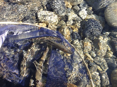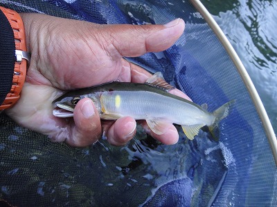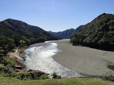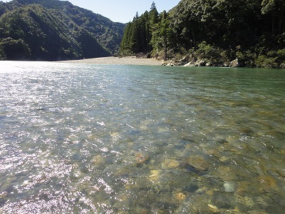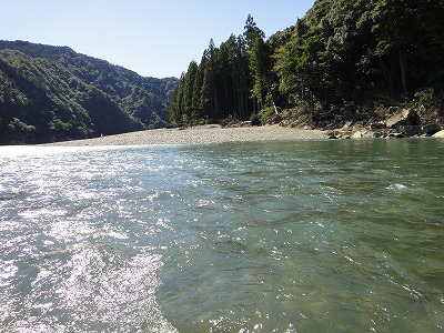 | 古座川を後にし、熊野川の入口、新宮市まで戻ります。ビジネスホテルユウキにチェックインし、隣にある「まんぼ屋」さんへ。以前にも利用し、メニューの多さにびっくりしたお店です。地の魚からラーメン、カレーまで食いしん坊には有難いお店。何を食べたのか覚えて居る範囲で。生ビール×2、ウーロンハイ×5、サワラの刺身(超新鮮!)、くじら尾の身、ぼたんえび刺身(熊野灘で獲れるのが本当のぼたん海老で、北海道のは正式名やまとエビだそうです。)、だしまき卵、チャンジャ、紀州梅鶏の塩麹赤ワイン風味焼き、サバ塩焼き、アジフライ(これもウマかった!)、丼一番人気ミニかつ丼、〆のラーメン、以上(だったと思う)。Y田さんがめちゃくちゃ食べたと言うので思い起こしてみましたが、そうでもないですね。 さて寝心地の良いベットでぐっすり寝て、翌朝は7時出発です。昨日とは打って変わって快晴!すき屋で朝カレーをかきこみ、お弁当が美味しいと評判の「おむすび一郎」で弁当調達。浪花おとりさんへ向かいます。 久しぶりに見る熊野川は思ったほどの濁りも無く期待を抱かせます。しかし到着した浪花おとりさんでおっちゃんの一言!「どこで釣るんや?」・・・不安増大。「どこって北山川やで」・・・「釣れるかも分からんなぁ。」・・・「まあ行ってみますヮ」・・・昨日の雨で若干の増水もあり厳しいらしい。そんな状況下でもピチピチおとりを置いてあるのは流石の浪花さんです。十津川は増水。合流点上の北山川、小船前では餌釣りの方がずらり。上から見ると濁りも無く石色も良い感じ。期待が膨らんできます。瀞流荘付近まで行こうと考えていましたが、途中の百夜月(ももよつき)辺りは良い感じに見えました。初めての場所ですが少しやってみることに。この先で時間通行止めをやっていたのでその都合上1時間ちょっとの釣りです。 もじもじするY田さんにまずは自然と一体化することをご指導し、川へ。川面にはまだ日が差していません。餌釣りの方が2名。様子を聞くと友釣りでも釣れると思うよ〜!ビクにはおとり頃のサイズも!時間も無いのでやってみます。瀬の中盤を横切る感じで奥へ探って行きます。膝上ほどの水深の所まで来ると反応あり。少し待つと掛かった!嬉しい1匹目。やや小ぶり。その筋を探るも反応出ず。違うパターンの所へ。やや石が大きい水深が有るところへ。居る感じ!ギュン!掛かった!20cmほどの綺麗なメス。居ますねぇ!これは連発か!ダメでした。付近で1匹追加が精いっぱい。ここでは3匹。ですがおとり確保が出来て予想以上のサイズも掛かってOKです。 瀞大橋まで移動します。途中「竹筒」の絶景ポイントで記念撮影。圧倒的なスケール感にしばし見とれてしまいますね。瀞流荘前も良い色に見えますが、今回は北山が初めてのY田さんのためにもロケーションの良いポイントへ。「室谷の瀬」へ。 まずはおむすび一郎の弁当を喰ってから午後の部を開始。14時までの予定です。朝から強かった風は暴風と化しています。先ほどの感触から良いと思われる瀬落ちの開きをY田さんに勧めてdeibuはトロ尻から。思いのほか早く掛かった!居るようです。しかし暴風が竿を曲げて感度を奪い取ってしまうので難しい。風の切れ目で掛かりましたが、糸が緩んでしまい団子になって飛んできて手前でポロリ。しかしたまに来る当たりは強烈で風に負けずギュンと竿を曲げてくれます。6回掛けて4匹取り込み成功。スマートで綺麗な鮎でした。北山川は、鮎が多いとは言えませんが、掛かります。濁りもやっと取れてきて垢も付いています。風が無ければそこそこ楽しめるのではないか、という感触でした。 さて最後の釣行は鮎を全て放流です。湯の口温泉でしっかり温まり、恒例のみかんをどっさり買い込んで、途中、一冨士の中華そばを食べ、「2012鮎納竿の儀」ツアー終了です。今シーズンも遊ばせてもらってありがとう。また後日、シーズンのまとめをしておこうと思います。 |