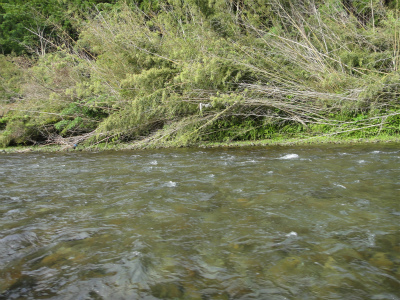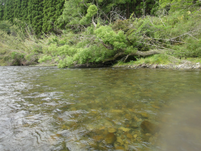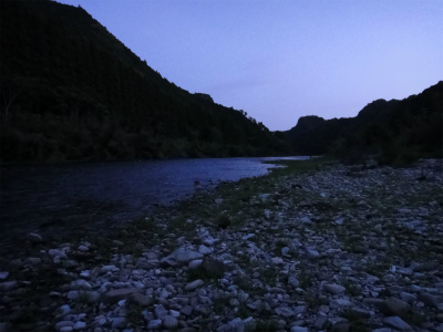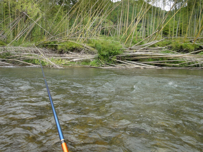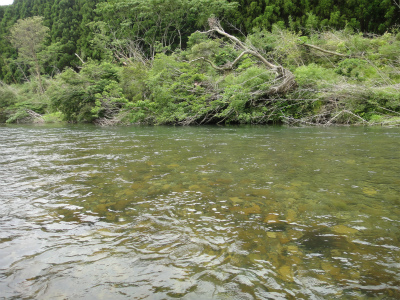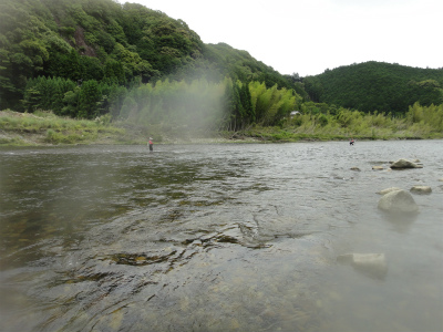 | 古座川の解禁釣行は2005年以来8年ぶり。昨年は村田名人いわく「鮎が天から降ってきた!」と言わしめるほど鮎がいた古座川。今年も好調が続くと思わせる情報が多く、早くから行ってみようと計画していました。ポイント選択は先行した夏は川漁師さんに「本流の瀬」と言う条件付きでゆだね、金曜夕方古座川入り。田上おとりさんで初の古座川年券を購入し鶴川橋のベースキャンプに合流しました。初の車中泊となるY田さんも合流し古座川前夜祭です。川面にはホタルが乱舞しロケーションは最高! 昨年から川での食事時、ごはんはパックではなく、なるべく炊くようにしています。ユニフレームと言うメーカーのライスクッカーを使い、ちょっとしたコツを掴めば超簡単です。炊き立てごはんがあれば贅沢感がより一層UPします。また、コンビニやスーパーで買い、冷たくなったおにぎりを飲んだ後や朝にお茶漬けにすると好評です。お茶漬けの素とどんぶりサイズの器に熱々のお湯をたっぷりと。わさびがあるとグレードアップ!売れ残り気味のこんぶやうめぼしおにぎりが最高のお茶漬けになりますよ。 さて、明るいうちに一通り川を見てきた川漁師さんによると釣り人はかなり多いようで、各ポイントには釣り師が居たそうです。明日は早起きですね。4時に目覚ましをセットして就寝しますが目が覚めると3時過ぎ。梅雨の天気が心配でしたが、夜空を見上げると月と満天の星がきれいです。あ!流れ星!川にはホタル、人工衛星も3個発見!一つは一瞬月に反射して大きく輝きましたが。宇宙ステーションでしょうか。一人楽しんでいると川漁師さんももぞもぞと起きてきたのでモーニングコーヒーにします。やや寒いですが、ここは本州最南端、岐阜の川ほどではありません。4時半に明かりをたよりに仕掛けセットして古座川発進! 川漁師さんは瀬肩へ。deibuは瀬落ち開きから。Y田さん、準備中。。。「混雑」の古座川ですが100mほどの瀬に私たち3人だけ。なんせ通常は瀬にだれか居たらほかの瀬を探すのが古座川流。他では考えられませんね。手前からゆっくり送り出し、ザラ瀬で落ち着くとほどなく当たり!おとり同サイズの古座川美人です!しかし次はチビ。バンバン追う感じではないので広く探っていきます。流芯へ入るとギュンと鋭い当たり!これは良型!油断していたので少し伸されてしまい身切れ。良いのも居るようです。しかし続かない。瀬を釣りあがっていきますが中小型が散発。流芯に狙いを変更。川が明るくいい感じで気配は有るものの追ってこない。あとで再挑戦。 どんどん立ちこんで右岸際です。この筋が正解。ズキューン!と掛かってきます。サイズは16pほど。追い感度が出まくって最高に面白い掛かり方。この筋で入れ掛かりになって「解禁」を味わいました。10時ころまでに46匹。時折日が差しますが、風も強く体感温度は上がらず。水温もそれほど上昇しないでしょう。これから状況が変わるのか。 ランチの後、上流のほうへ行ってみます。水があるところを上がるのは大変ですね。上まで来ると自分たちがやっていたところよりかなり賑わっています。とりあえずザラ瀬におとりを入れてみますが反応悪し。石色は正直です。午前中良かったような明るい場所を探します。左岸竹藪近くはやや水深があって川が明るい。ここは掛かりました。倒れている竹の際が良い。しかし午前中のようなペースにはなりません。同じようなポイントでポツポツ拾いながら下ってもとの瀬に戻る。瀬肩からもう一度。やっていなかった右岸際は掛かります。朝掛からなかった流芯も再確認。ガガッ!ギューン!で掛かる!しばし入れ掛かり。瀬を2往復しましたが2度目は反応なし。午後は32匹で終了です。午後の上流へ行ったときが空白となってもう一息伸びませんでしたが、すべてが追い掛かりで黄色い鮎だったので満足です。牡丹荘の温泉は鮎師ばかり。この温泉では地元のおばさんたちが作った寿司や手長エビの素揚げ、ミカン類、冷凍アオリイカ500円、おでんまであっておいしいですよ!オークワで食材調達してリバーサイドホテルへ。八時半には爆睡していました! |