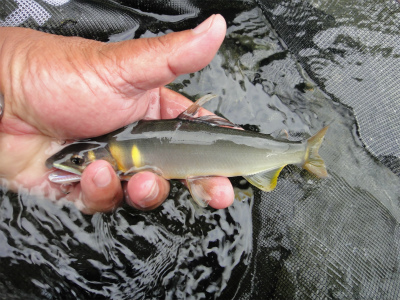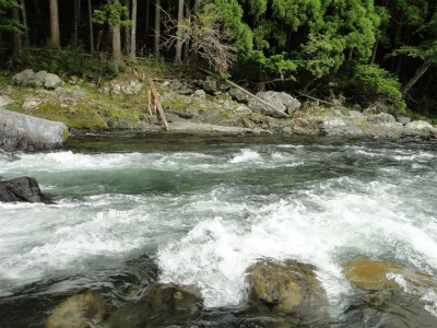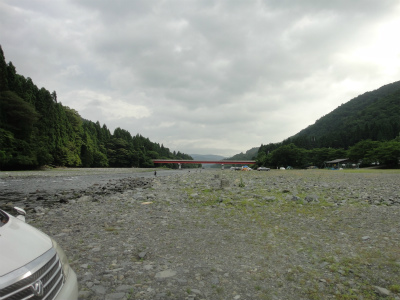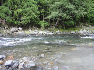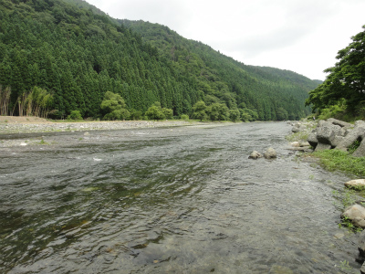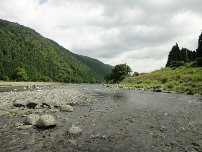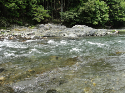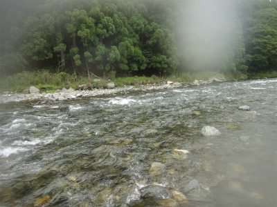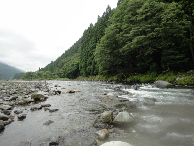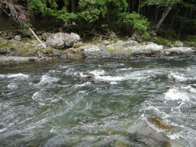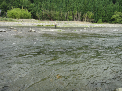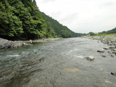 | 今回の野営地は「桑野橋河川公園」という河川敷です。水際まで車(普通車でも行ける)で行けるので、ここならおとり缶を取られる心配も少ないでしょう。(でも寝るときは少し高い場所で寝ましょうね。急な増水もあります)清掃協力金一人300円で利用できるとてもリーズナブルなキャンプ場です。この日も結構な人出でした。夜は川面をホタルが舞って良い感じでしたよ。川も比較的安全なので家族サービス兼鮎釣りには最高な場所ですね。キャンプ場の真ん前が絶好のポイントになっています。注意看板にも「釣り人に迷惑をかけないこと」とあり、釣り人、川遊びの方たちの境界が割とはっきりしているようでした。 その一番いいポイントは朝6時から釣り人が並んでいます。車をキャンプ場上端へ置いて周辺を探ってみます。目の前は大きなトロ瀬。水深は平均浅い。上は荒い瀬があってその落ち込みには早くから椅子を置いて釣り人が並んでいます。大きな石があり水深もあって良い感じに見えますが隙間なし。なのでその上の棚からやってみます。 絶好のポイントに見えますが当たり前のところでは当たり無し。左岸の岩の際を攻めるとやっと当たり。きれいな背掛かりで受けたのはウグイでした。瀬肩のなみなみで待つと掛かった!暴れまくってジャンプ!あまごです。バレました。まともなところはきっちり竿が入っているようです。鮎が居ればウグイやあまごより偉そうにしていますもんね。 もう一段速い流れを狙います。ドカーン!朝からマッ黄色です。居るところにはいます。極めて入れにくそうなところでだけ掛かる。絶対数は少ないです。上にも長い瀬がありますが、斎藤さんが攻めて全然だったのでそこはパスして少し上の大野堰堤まで見に行きました。高さ3mほどの取水堰堤の下はちょっとした瀬がありその下は広いトロ瀬です。そのちょっとした瀬の落ち込みが石色良しだったのでやってみると6連発。ですが狭いエリアのみでその下は掛かりません。トロ瀬は時間で掛かりそうな雰囲気ですが待てません。 朝はダメだった瀬を探りますがやっぱりダメ。石色が白っぽい感じです。瀬の落ち込みにいた釣り人が一人居なくなっていて左岸の釣り人も昼休憩中。チャンスです。さっと行って流芯へ。ギュギューン!やっぱり掛かる。皆さん泳がせでやっているので流芯は更場!しかしそれを見た左岸の方たちは休憩もそこそこに開始してしまいました。遠慮しながら少し釣らせてもらい昼休憩。今シーズン一番の暑さでやや熱中症気味です。ゆっくり休憩して3時に午後の部開始。 空いている場所は結局朝の段々瀬だけ。朝よりさらに細かくポイントを絞って入れていくと4匹掛かりました。デカい黄色い鮎ばかり。これだけまだ残してしまっていたわけですね。まだまだ攻め方が雑ですね。暑さで集中力も切れて4時半で終了。本日は16匹の貧果となりました。 安曇川の場合、キ○タマ浸かりながら釣るような場所が少ないので、この暑さは堪えますね。混雑する場合、限られた場所からどれだけひねり出すかが釣果を左右すると感じます。同じ川を見てもどれだけ多くのポイントとして見られるかがまだまだ自分は不足している。長良川でも同じだと思います。次回以降のテーマにしよう。 さて次回は木曜日にどこへ行こうか迷い中。その後は15日、16日と郡上へ行くつもりです。1日はJCセミの下見、1日は白鳥で やってみたいなぁ。 |