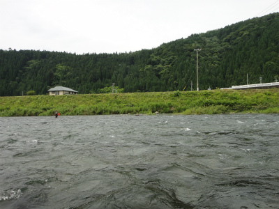 | 今回はジャパンカップセミファイナルの下見です。上流側になるAブロックのエリアをやってみます。やや高水で条件としては最高な状態。朝はまだ高水でお宮さんからの瀬はやりにくそうだったので、名皿部橋上流左岸の消防道路から下流をやってみます。橋上から見ると鮎は沢山見えて、少し前の渇水時よりも随分活発に動いていました。橋上の瀬落ちから大きく開く辺りはどこも反応良く、特に橋付近は追い気のある鮎が多数いました。反対にバリバスの時に釣果が出ていた橋下流の流れは鮎は多いものの追ってくれず。午後はエリア上限から瀬を探ってみました。石色は全般にきれいで、どこでも掛かりそうです。瀬ではサラ場らしい良型の良い当たりもあって楽しめました。 この日の下見から導き出したこと Aブロックでは右岸からアプローチする。理由:選手は左岸が多くなる。右岸よりに流芯がある。 瀬の中にも小型の元気な鮎が多くいるので、瀬で勝負する。強い流れと緩い流れが混在するようなところ。平場はおとりが早く変われば勝負できそうだがペースが掴みにくそう。針はG社、刻が良い感じ。絡み付く。竿はRSで行く。大きな石のある強い瀬では使いやすい。小型のおとりも瀬で安定させられる。帰着時間は名皿部橋上流だと15分前におとりを外さないといけない。 |