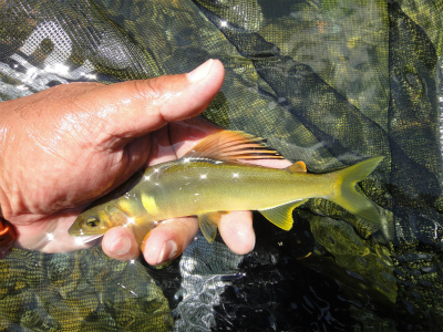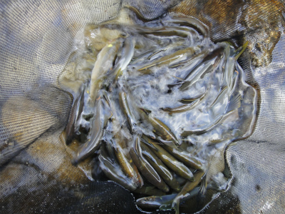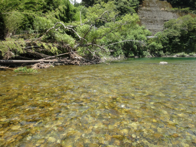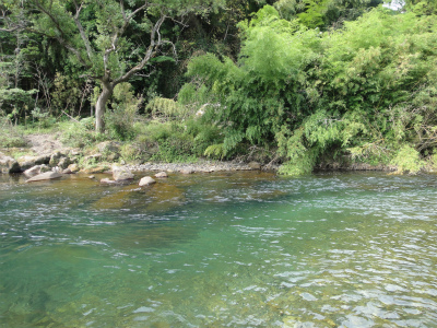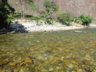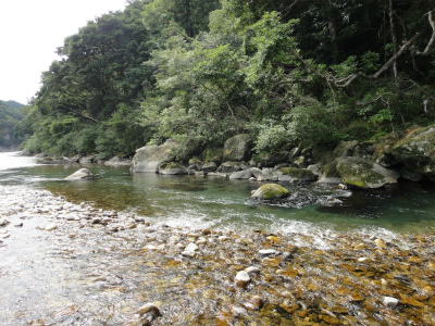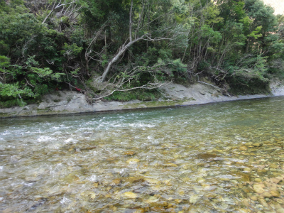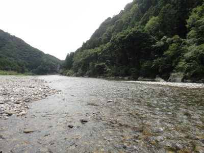 | フリーの二日間、古座川へ行ってみました。岐阜と違って紀伊半島は渇水です。今回のテーマは数釣り!沢山釣りたい!色々なポイントに竿を入れてパターンが掴めるか。深トロで良型も狙いたい。田上おとりさんで最近の動向とおとりを仕入れます。一昨日も束釣りが出たそうです。反面1日でツ抜け前後という方たちも居るようで、ツボを見つけるのか、ドツボにハマるのか、難しい面もありそうです。概ね下流エリアが良さそうですが、この時期、そして特に土日はカヤックが沢山下ってくるそうなので、朝のうちにカヤックのスタート地点である小川合流点より下流を探って、カヤックが出てきたら合流点より上に移動する大まかな行動予定にします。 ぼたん荘前へ行きたかったのですが、人が多い様子なので少し上の高瀬へ。ちょっとした瀬と下に深場があるのでそこも狙って見たかったので入ります。ザラ瀬手前からおとりを入れていくとすぐに掛かる。ザラ瀬はポツリポツリと掛かりますが12〜15p、たまに17p級です。瀬落ちの少し水深があるところでも同じ。下の深場へ。大きな石の前に入れるとズボッと目印が消える当たり!で20p級です。でも小場所なので2匹で終わり。はい、移動です。 次は少し上がってゲートボール場の前へ。高瀬橋と小川合流点の中間くらいです。比較的浅いトロと100mほどの良い瀬があります。ここの瀬は反応が良い。しかし早くも上流側にはカラフルなカヤック軍団が!まず先導の方が来て、釣り人を迂回するコースがないか確認。右岸側に細い流れがありますが一部カヤックを降りて運ぶ必要があるので、手振りで前をどうぞと合図。丁重なお礼の後、カヤック軍団通過!渇水なのでゴトゴトと下って行きます。少し間を置けば掛かるだろうと思っていましたが、そろそろかなと思っていると上流には次の御一行!結局釣りになりませんでした。合流点より上へ行きましょう。 見回り中?の田上おとりさんに遭遇し情報収集。どこも釣り人が入っている様子。鶴川橋下流の小場所は無人。そこへ。浅い短い瀬はピカピカです。出し掛かりですがここも小さい。チャラが淵へ流れ込むところへ。倒木付近へ入れてみるとギューン!これこれ!さらに淵頭へ。大きな石が点在しているのが見えます。タンッ!と言う感じの小さい鋭い当たりで良型マッ黄色、というか金色!自然が作り出す奇跡ですね!うっとりするほどの鮎は年に何度も出会えません。それをおとりにするとまた同じのが!しばし至福の時間。丁寧に探って次へ。 これは小場所狙いのほうが良いのかと思い一枚岩少し上の瀬へ。ここも流れ込みが狙いでした。しかしここは反応が薄い。ポツポツ掛かるものの当たりが弱い。次は何処へ! 車を走らせると一枚岩の上の瀬は無人。何時も見ながらやってみたいな、と思っていたところ。行ってみました。石色良くいかにも良いポイント。当然釣り人も多いでしょう。一枚岩の根元で首まで浸かって岩のギリギリを攻めている方が先ほどから入れ掛かり!瀬でもポツポツ掛かりました。サイズもましです。夕方近くなり出てきたのか。またやってみたいところですね。ここで1日目を終了。今回は数狙いだったので小型もリリースせず引き船に入れました。全てで60匹でした。どこの場所でもそこそこ掛かります。今日の感じでは最初の高瀬で一日やっても数は同程度出るのではないでしょうか。 deibuは複合オンリーですが、この状況下ではやはりナイロンやフロロの軽い糸が良いのでは?と考えてしまいますね。針も軽いのが良いでしょう。また、ボウズハゼも良く掛かります。高水温、小型おとりではこれが掛かるとリズムが狂います。掛かってしまったら直ぐに抜いてしまうのがトラブルを少なくするコツですね。モタモタしているとグルグルになって仕掛けまでダメにしてしまいます。 |