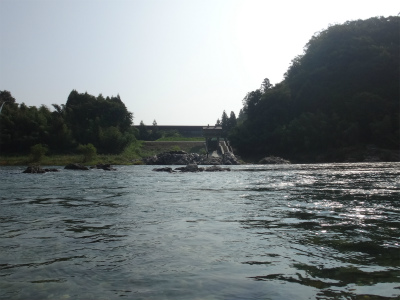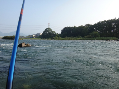 鮎の瀬橋上流は広大なトロで、鮎釣りにはあまり向きませんが、岩盤が点在し、鵜飼用の鮎も放流されるらしく、鮎は多いです。 |
