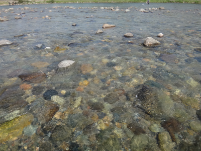 | 長良川でも中央エリアの板取川合流点から津保川合流点辺りまでが最高にきれいな感じがします。チャラにも鮎が沢山いて釣り人を惑わせます。 |