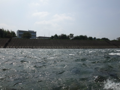 | やはり瀬は安定して釣果が出ていました。特に左岸のこの建物がある辺りは良かったようです。決勝でも出ていました。 |