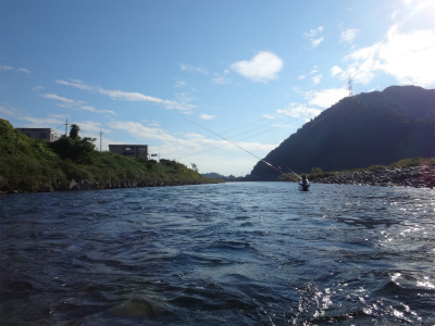 | ジャパンカップ取材の関係で9月20日に竿を出してから10日間「も」竿を出せませんでした。終盤に来てこれはつらい。来週も所用で1週間釣りに行けないので長良川で遊ぼうと2日間行ってきました。郡上漁協の未換金出荷伝票があったので換金に行こうと郡上へ。五町の瀬を橋上から見るとまだまだ鮎が見えます!下流合流点を見るとM名人の車らしき影、見に行きます。こんな朝早くからやってるのは間違いないだろうと行ってみるとやはりそうでした。めだかさんの釣果情報でいつも圧倒的釣果を出している名人です。しばし見学。岸から丁寧に探っています。おとりが動く範囲が広い!終盤に来て良い勉強になりました。8時になったので漁協へ行ってみますがまだのようです。榎本さんも出発したと言うので換金を諦めて中央へ下ります。 昨年楽しめた曽代を覗くと居るわ居るわの鮎だらけ!ここにしよう!中州へ渡って本筋を右岸側から探ります。瀬肩に向かう浅い流れを狙ってあまり立ち込まず丁寧に。朝見た名人の釣りを真似て。 そして今回はチラシを使います。ジャパンカップで上位4名が錨以外の針だったので試したくて仕方がなかったのです。三嶋選手が言っていた「追い切らない鮎を掛けるイメージでチラシを使った」を検証したい。惜しくも4位になった沓澤選手も同じような見解でした。 チラシ、ヤナギ=激流が自分のイメージで、掛かりは錨、それも3本より4本が確率が上がる、というのが私の認識の基本でした。「掛かりやすさ」と言う点では今も考えは変わりませんが、場合によっては錨以外が良い時もある、という現実を垣間見て、その「場合」が分かればもっと釣りの幅が広がるな、と思えました。鮎はいっぱいいて、自然なカタチでは追い合いしているのにおとりだと反応してくれない。今回はそんな「場合」で検証。 針は一応持っていた既製品オーナーのツイストチラシ狐3本の8.5号とバリバスのやなぎ仕掛け2本8.0-7.5号を使ってみました。竿下で泳がせるイメージで我慢していると掛かった!やや白っぽい。絡め取った感じ。ブルブルッとして掛かる。しかしそれが泳ぐとシュパーン!と掛かる。いかにも「引っ掛かる」感じの鮎もありますが、おとりがつながるので縄張り鮎が追ってくる確率も上がる感じ。確かにケラレも感じるのですが、錨だったら掛かっていないだろうな、という掛かり方も多かったのです。警戒心が強いようなしぶい時はおとりが替わる、というのは何よりも効果的です。おとりがつながる!その効果もあってか午前中は20匹超え!チラシ、ヤナギだと絡まったりして扱いが気を使うかとも思っていましたが以外に扱いやすく、エビもありませんでした。 そして今回はおとりが替わった次の送り出しを特に気を付けました。少しずらして手前からしっかり底に入るよう心掛けてやりました。一泳ぎ目で掛かることが多かったように思います。午後はイカの瀬が落ちて急瀬〜平瀬となる場所へ。急瀬には待ちガリの方が2名、その下に瀬を狙う方がいてその下に入らせてもらう。すぐに掛かるが小型、次も小型で循環が悪い。下流は右岸は竿1本分で並び、良く掛かっている。上流の瀬を攻めている方がこれまた良く掛ける!それに良型が多い!真似をして瀬にねじ込むと即掛かり!しかし身切れ。ケラレも何度か感じ、ここは錨が良かったかもしれません。瀬肩もやってみました。本命場所手前をチラシで丁寧に攻めておとりが替わったら錨にチェンジ!流芯で待つと気持ちよく掛かりました!夕方の入れ掛かりを期待しましたがそれは望めず終了。でも実り多い1日でした。 Y田さんと武芸川温泉−バロー−武芸川道の駅コースで小宴、明日も楽しめますように! |