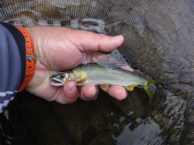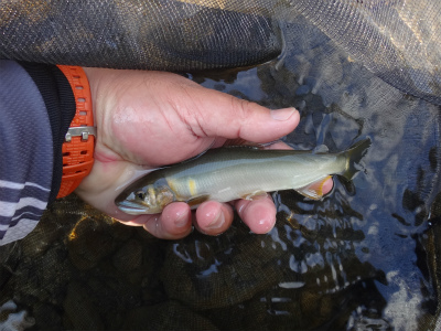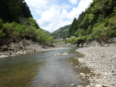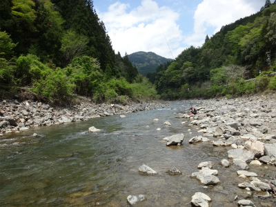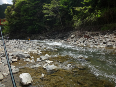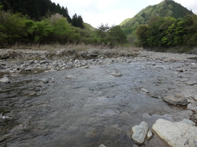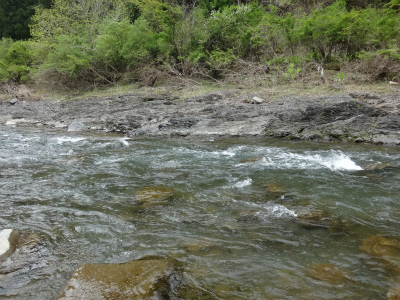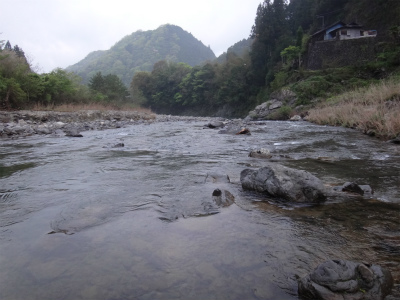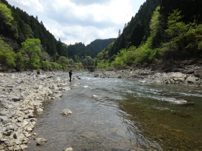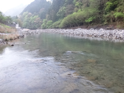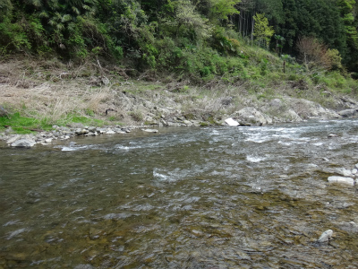 | 今年は5月11日の矢作川からスタートしようと思ってはいたものの、一応1日も休みは取ってありました。直前の大雨で諦めようとしましたが、大した降りではなく、やや増水で良い感じ。解禁日当日は天気も良さそうで、こうなると気持ちのストップが効きません。で、昨年に引き続き有田川へ!鈴鹿からは西名阪〜天理IC〜R24(京奈和道路)〜紀北かつらぎIC〜R480〜R370〜県道115利用で有田川の花園、西浦おとりさんまで160q、日中でも2時間45分で行けました。しかも京奈和道路は無料なので、有料道路代ゼロ!意外に行きやすいのかも。 有田川には前日11時過ぎには到着。つり人社から今年発行の和歌山鮎釣り大明解MAPを片手に順に見て行きます。これは写真入りでポイント、おとり店はもちろん、駐車スペースの有無や入川口、温泉や宿の情報まできっちり書いてあり、すごく便利です。和歌山河川へ行くなら必携です。ぜひ岐阜バージョンや長良川バージョンも出してほしいですね。さて川はと言うと濁りで水深が判断付きません。護岸の工事も多く、ポイントは限られます。鮎は何処でも確認できました。群れは居ても中層を漂って固まっているのではなく、速い動きで元気にハミまくっています。掛かる群れ鮎。ダム上エリアをくまなく見て回り、最後に西浦おとりさんで生情報を聞き、放流場所が近いこと、深みがあること、釣り人が少なそうなことを考えて最終的に鳥居橋下流でスタートすることに決めました。夜宴の場所を決めて釣り友の到着を待ちます。日が落ちてもさほど寒くなく、吐く息が白いほどだった昨年とは大違い。これで掛かれば言うことなしですが。 さあ、解禁の朝を迎えます。明るくなって川を見るとすっかり濁りが無くなっています。良さそうに見えたポイントはさほど水深が無く石も少なくいまいち。見ながら下ってトロ尻まで来ると瀬にかけて石色が良くなっています。鮎も多く見えてここで開始。5時に今シーズンのスタート!久しぶりのおとりを流れに放すとスッと波気に入って行きました。1、2、3!ギュン!掛かった!意外に黄色い鮎!良い香りがします。パタパタっと続いて掛かる。白い鮎も混ざります。まだ誰も来ないので丁寧に探る。流れの通ったところではまだ追いません。その脇の緩いところで自由にさせて掛かる感じ。そのうち流れの中でも追いだすかと何度か探っていました。一気に追いだしたのが9時半ころから。流芯で黄色いのが掛かる。連発しました。入っていた瀬は小さい中州で左右に分かれていました。右岸側は細いが早い流れ。左岸側は少し緩く大きめの石が点在して変化の多い流れ。どちらでも入れ掛かり。11時まで解禁らしい気持ち良い釣りを堪能して休憩です。数えるとちょうど50匹でした。仲間も30匹、34匹と良く釣れていました。お日様が陰るとやや肌寒い感じですが、日が差していれば汗ばむほど。ここで飲むビールとつまみのホルモンは最高です。 さて束の可能性も無くはないので午後も頑張ってみます。午後は鳥居橋の上に行ってみます。長い瀬があって気になっていた場所。鳥居橋すぐ下の瀬でも入れ掛かっています。橋上流の長い瀬がトロに落ちる手前ではここが地元のU名人が爆入れ掛かり中!長い瀬はほとんど釣り人がいないのでU名人に聞いてみると、さっきまで満員、今は昼休憩で減った、とのこと。すぐ上で開始。名人の入れ掛かりを見ながら2匹だけ。目の毒なので瀬を上まで見に行きました。浅いトロからの瀬頭でも入れ掛かりしています。その下流の瀬を探ってみますが、反応が薄い。やっと3匹。瀬の中間は皆さん苦戦中。瀬の中にあるタナはポツポツ掛かっています。人も増えてやるところがないので橋下流へ。瀬肩が空いていたのでやってみるとここでは良く掛かりました。小砂利でもきれいなところは掛かります。ここで14匹掛けて午後4時終了。午後は22匹でした。昨年は寒い中、20匹だったので、それに比べれば上出来です。鮎のサイズは最大で17〜8p級が2匹、ほとんどが14〜5p、10pほどのビリビリが5匹ほどでした。翌日10匹以上食べましたが、工事の濁りで砂を噛んでいるかと心配しましたが、それもなく、おいしく食べられました。 さて今回はシーズン初回で新しい道具も使ったのでその感触をかいておきます。まず竿ですが、シマノの小太刀RSを使いました。長さは8mです。長さは9mと比較してデメリットを今回の河川では感じませんでした。それよりも幅の狭い流れなどでは取り回しのしやすさを強く感じました。具体的には、比較的立ち位置に近い狙うポイントにおとりが入った時、9mでは竿先とおとりが流れに平行にできないことが多く、攻めきれない感じがありましたが、8mだと手前の流れのポイントにもきっちりおとりを入れられます。そしてRSのキャラクターはスペシャルRSとほぼ同じ。短くて軽い分、より細かな操作はし易いですが、9mよりさらに引きにくい感じです。引くならやっぱりFWですね。RSでは狙ったポイントでおと