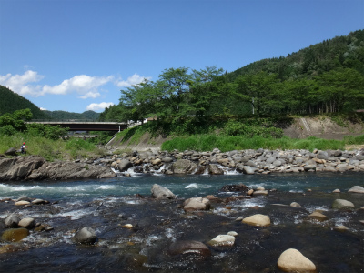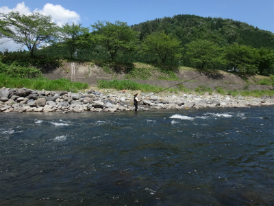 | 土日連戦の1日目は超ハードなダイワマスターズ中部B地区、長良川郡上大和地区大会です。昨年であえなくシード権は失い、また1からのスタート。気合入れて行きたいところですが、先週末の釣行で濡れながらやったのがいけなかったのか体調を崩し、めずらしく発熱してしまい、ややもうろうとしながら当日朝会場入りしました。大会エリアの下見ができていませんが、慣れたエリアなので不安なし。但し河川改修で本部前はかなり変わっていました。 抽選の結果、1回戦は本部より下流、おとり配布順は真ん中よりやや後ろくらい。どこと決めず歩きながらポイントを探します。本部前の岩盤瀬に入りたいですが、渇水と改修の影響か流れが細く、このスタート順では入れません。下流へ歩きますが体がだるおもい。釜淵上の瀬は何とかは入れそう。遠くまで行く気になれずここで勝負です。入りたかったのは右岸側本筋の荒いところですが、そこは入れず、中州から左岸の細い流れで開始します。3時間で6匹釣ればいい。そう考えて開始。小さい棚で泳がせる。む、難しい!動く気にもなれないし、今日はダメかな。そう考えたころ荒い瀬に一般の釣り人が居なくなった!それいけ。すぐに移動します。ここなら数匹は絶対に掛かるだろう、とやってみました。瀬の中でも石の真後ろや際、一番いい筋に見える流れをちょっとだけずらして探る。1匹目良型がくる!黄色い付鮎です。こんなのばかり釣れるはずはありません。これを使って追い気のない鮎を掛けねば。丁寧にフリー気味に瀬の中を泳がせる。思惑通りやや小型が掛かる。これが続けば楽ですが、それほど密度は濃くないのか続かない。弱って泳がなくなったら、ここ、というポイントにやや強引にでも持っていく。すると黄色い鮎が掛かる。一番期待した絞り込む手前の小さな棚は入れるなり根掛かり。回収に行くとロープです。おとり回収後、ロープを引っこ抜こうとしましたが抜けずここは諦めるしかない。ここで2匹くらい取れるか、と思っていたので厳しくなったが、狭いエリアで粘って7匹まで掛けることができた。居つきの黄色い鮎が3匹、残りは遊び鮎、それと瀬の中でウグイ3匹です。検量終了、まず第一関門をクリアできました。 決勝のスタート順が今年からシード選手、そのあと予選釣果順となりました。deibuは下流エリアの15番目でした。 決勝スタート。下流へ歩きます。栗巣川出合いからやや下流の開いた早瀬へ。上手に斉藤師匠。石色も良く鮎も跳ねて居るのは間違いないですが、掛けられる鮎かが問題です。開始しておとりを入れると良く動くのでやはり鮎は居るようですが、浮いた感じです。底を這いまわる遊び鮎なら掛かりますが浮いている鮎は自分には無理。多少は掛かるかもしれませんが時間もかかりそうだし、その時間も読めない。すぐに止める。 少し上の栗巣川出合い付近の右岸側はポッカリ空いている。そこへ移動。左岸側には選手以外の方が3名。栗巣川が流れ込む深瀬へ。芯は養殖では入りません。ですが流れに入れて止まるところに馴染ませて少し待つ。テンション最小限。すると付いてきた。表層は強く早い流れですが、流れの底には少し緩い良いところがあるようです。しかしそこをちょっと外れると流されて浮いてしまいます。小寺競技委員長が見ていて、おとりが浮いているのに良く掛かったな?と試合後に言っていただきました。さすがに良く見ている!そうなんです。しょっちゅう浮かされていました。浮かされたらまたスッと緩めて自力で潜らせる。そして落ち着いたらじわじわ引く。ギューン!やった。良いのが掛かった。向こう側の反転流に入れて流れに馴染ませ、芯の底へ滑り込ませると良型が激しく追ってきて楽しめた。反転流でおまけの小型2匹も掛かり8匹掛けられた。途中対面下流のおじさんが帰って行ったので、その前の良い流れを攻めましたが、そこでは1匹掛かっただけ。多く残っていたのは攻めにくい深瀬の流芯だけでした。込10匹ならブロックへは進出できたかな、と喜んで検量。結果なんと3位表彰台でブロック進出となりました。斉藤さんも通過して、また涼しい馬瀬で楽しい下見の「理由」ができました。 今回の反省など 仕掛けはシマノメタゲームの0.04でいつも通り。付糸はナイロンの0.4で15pです。今シーズン背針は原則使用していません。老眼で付けにくく、襟に刺さったりで面倒なのと行く河川も渇水ばかり。盛期で水が多ければ使います。針はがまかつ刻をチョイス。1回戦は追いの弱い鮎も視野に入れて7号、2回戦は追う鮎を掛けるために6.5号にしました。良く掛かるオーナーの楔SPは追いが良い鮎に対してはバレが少し気になるので使いませんでした。daiwaのサクサスも良いのですがバラ針がないので刻にしています。1、2回戦とも明確なバレ、ケラレを認識することなく針は完ぺきでした。 釣り方では、石の大きい長良川では、RSのソリッドのせいなのか石裏などでエビにしてしま