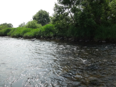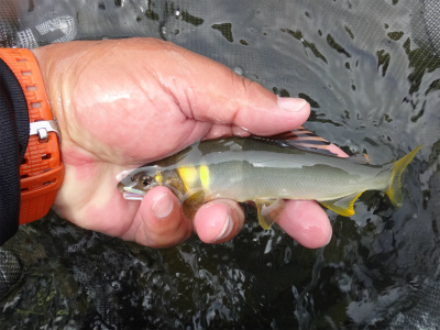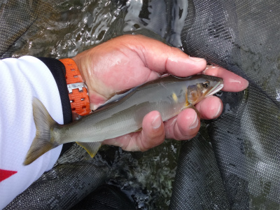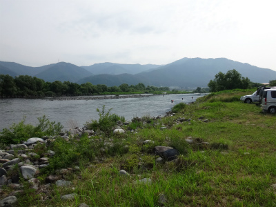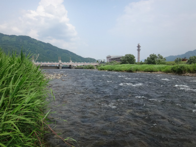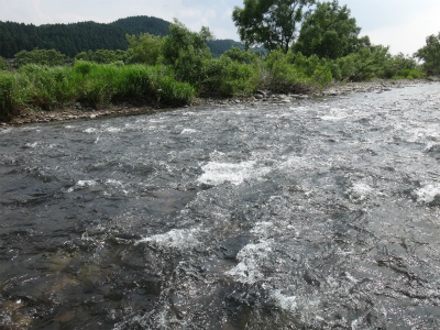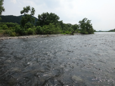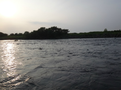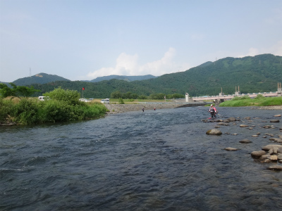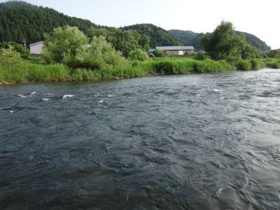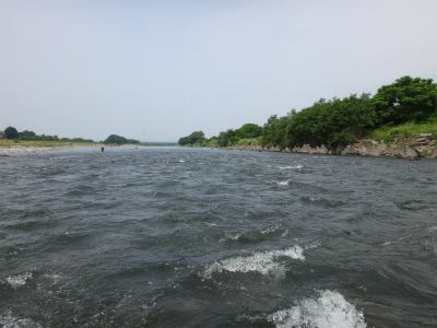 | 福井の息子アパートへスクーターの配達です。朝到着すると居ない?ワールドカップ日本戦を友達のところで見てるらしい。部屋は相変わらずの散らかり様。おそうじオバサンと化す奥様を置いて九頭竜川へ。朝の渋滞でもものの15分ほどで五松橋まで来れます。久しぶりに見る九頭竜川も渇水。しかし渇水の時はポイント把握のチャンスと考え広く動いてやってみましょう。 ちょうど五松橋と鳴鹿大堰の中間位の左岸に駐車。川へのアプローチが楽なところです。トロ瀬は何人か入っていますがトロ瀬尻の肩や瀬は少ない。トロ瀬では誰かが竿を曲げています。サイズも思ったより良さそう。ワクワクして9時に開始します。トロ瀬の尻から。青藻が多いですが石は綺麗で鮎も沢山見えます。じっくり泳がせれば掛かりそうですが雑な攻めでは掛かりません。川を斜めに動いて良いポイントを探す。が掛からないうちに横断!下の瀬へ。流れ込みから。ビリ1匹目。どんどん下がる。一番瀬らしいところへきてやっとガツンと来た。同じように見える瀬でもダメなところはダメ。掛かるエリアは簡単に掛かる。真ん中の流芯は掛からず右岸よりの流れで良く掛かった。13時前まで33匹。午後は上流へ。 右岸へ渡りまずは昨年良型がよく掛かったトロへ。石は綺麗です。引きまわしていると1匹掛かった。じと〜っとやれば掛かりそうです。分かったので上へ。大トロの上は瀬が3本に分かれています。この水量だと右岸側はチャラ、真ん中の本命場所に釣り人が集中していました。左岸側にも流れがありますが行ったことがありません。ここは通過してさらに上へ。昨年終盤に来て「おどし」が張ってあったあたりも水が少なく攻めにくそう。石色は綺麗です。さらに上へ。禁漁区の旗が見えてきました。大堰下から流れ出る真ん中の瀬へ。水深がないので小型ポイントです。それでも黄色い鮎が掛かる。大会ポイントですね。小場所も確認して右岸側の流れへ。ここでタビのフェルトがはがれる!張替方式のものはフェルトが意外に高いことと、はがれる危険性もあるので昨年から接着してあるタイプに変えました。今回は古いものを持ってきたのでやっぱりダメでした。予備も用意してありましたが車から一番遠いところではがれてしまった!渇水でズルズルの川は歩くの困難でした。で、右岸の流れは良いポイントだらけ。ただし釣り人も多く、土日は動けないでしょうね。ここで入れ掛かりもあって追加。その後は戻りながら所々で拾う。最後は駐車した前のトロ尻で夕方の入れ掛かりを期待するも1匹も掛けられずに終わり。午後は25匹でした。 58匹中、川へ戻した小型が15匹ほどいました。他はおとりサイズばかり。追いはきつく、掛かる場所では簡単に時速10匹超えです。ダメな場所はダメ。いかにパターンを早く掴むかが難しい川ですね。しかしさすがの九頭竜川、鮎はすごく多いです。青藻が無くなり、水が出て梅雨明け以降はまた楽しめそうですね! |