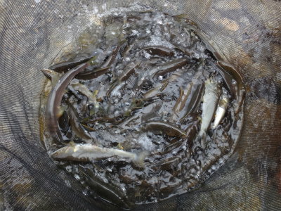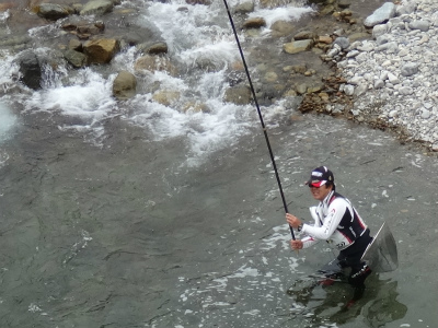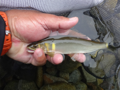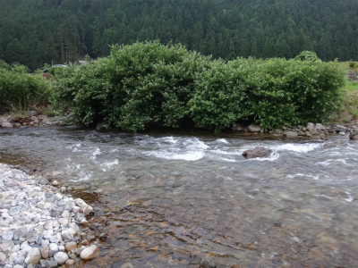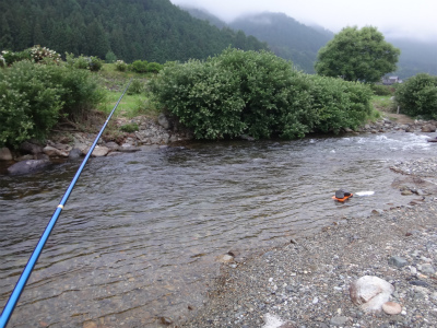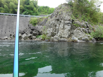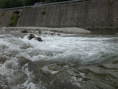 | 中央橋上流のポイント。良い瀬が続く。 | おとりを入れやすいところは小型しか掛かりませんでした。 |