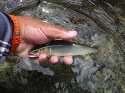 | 2日目でも強い流れにはこれが沢山いた。 | 青白いところが鉄板です。釣りきった後はすぐに石が曇ってくるきがします。 |