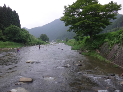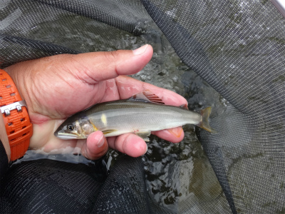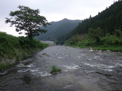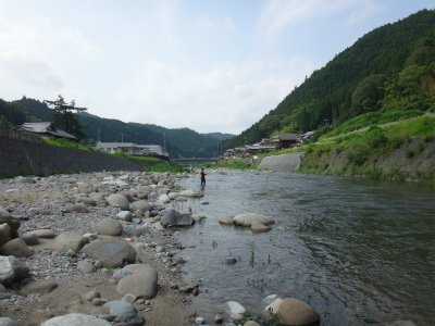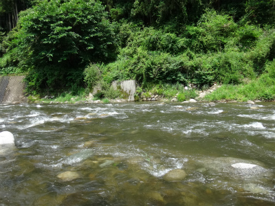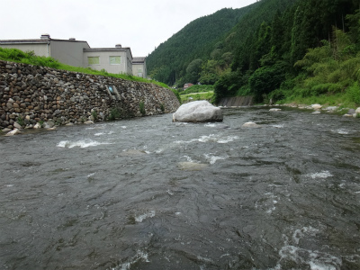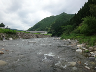 | 台風も近隣では大きな影響もなく過ぎ去り、適度に増水した河川でサラ場を狙うべく釣行河川を探します。岡田名人が良さそう!と言っている長瀬太郎川は高速代も掛からず近い。10時過ぎの出発でも余裕なので行ってみました。爆釣河川の名張川上流にある比奈地ダムのさらに上が長瀬太郎川です。名張市街地から15分ほど。田舎を流れる静かな河川でした。 まだ濁りは残っているものの水位は最高。朝から入っている岡田名人におとりを拝借し長い瀬の真ん中からやってみます。渓流相で石は大きめが点在しますが、砂も多い。放流湖産とダムからの天然もあるそうです。ヘチでも鮎が走るので密度は濃いようです。簡単に掛かりそう!底は見えませんが、水深がありそうな早い流れにおとりを入れて待ってみます。居れば掛かるはず。んんん?簡単には追ってこない。台風前は渇水が続きかなりシビアだったそうですが、増水しても鮎が大きく動いた感じではないようです。しかし上流で釣っている岡田名人は頻繁に竿を曲げている。ということは釣り方が間違っています。何とか2匹掛け、瀬の終端へ移動。タンクの上なので、ここは掛かるでしょう。居れば激しく追ってくるので簡単に掛かります。それでも一通り釣ると次が掛かりません。気配はあるがタナが違う感じ。最近面倒で背針を使っていませんが、後で考えると使うべきでした。 釣り下がってきた岡田名人に聞くと泳がせたら簡単に掛かる!だそうです。試してみます。立ち位置足元からおとりを放して川上を向いて釣ります。1mも泳ぎあがると簡単に掛かる!なんでだ?自力で泳ぐ姿を竿下で演出できていない証拠ですね。何時もの悪い癖で、増水後で川の条件が良いと考えるとトビツキ狙いで荒く探ってしまいます。まずパターンを探ってから動くようにしないといけませんね。この結果は岡田名人は58匹、deibuは21匹とトリプルスコアで現れました!まだまだ甘いですね。 |