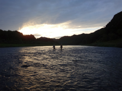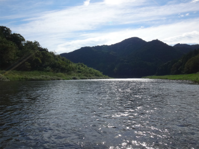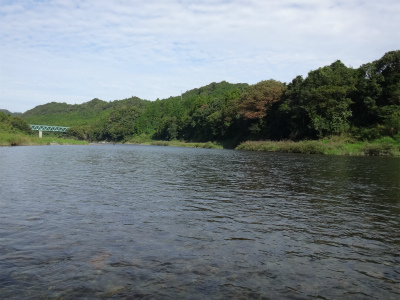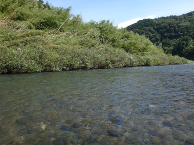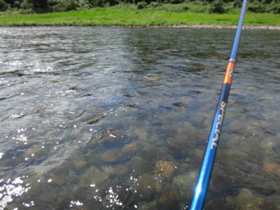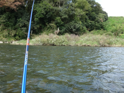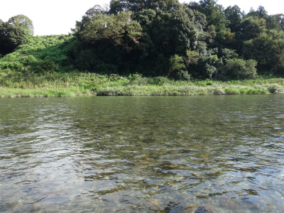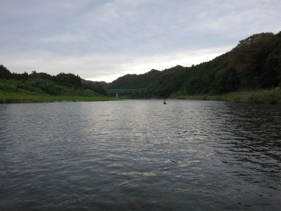 朝一この流れで一発でデカいのが掛かり、親子ドンブリ!調子が崩れたそうです。流れに押しがあってよう引く!とのことです。 |